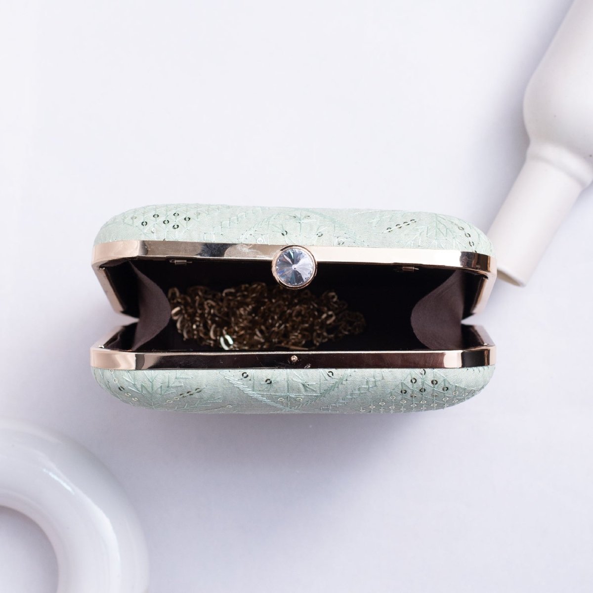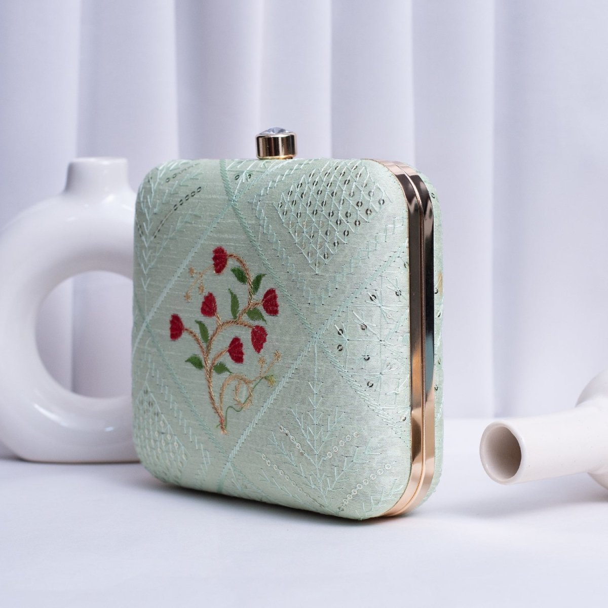 Artklim Pastel Green Based Threadwork Embroidery Clutch