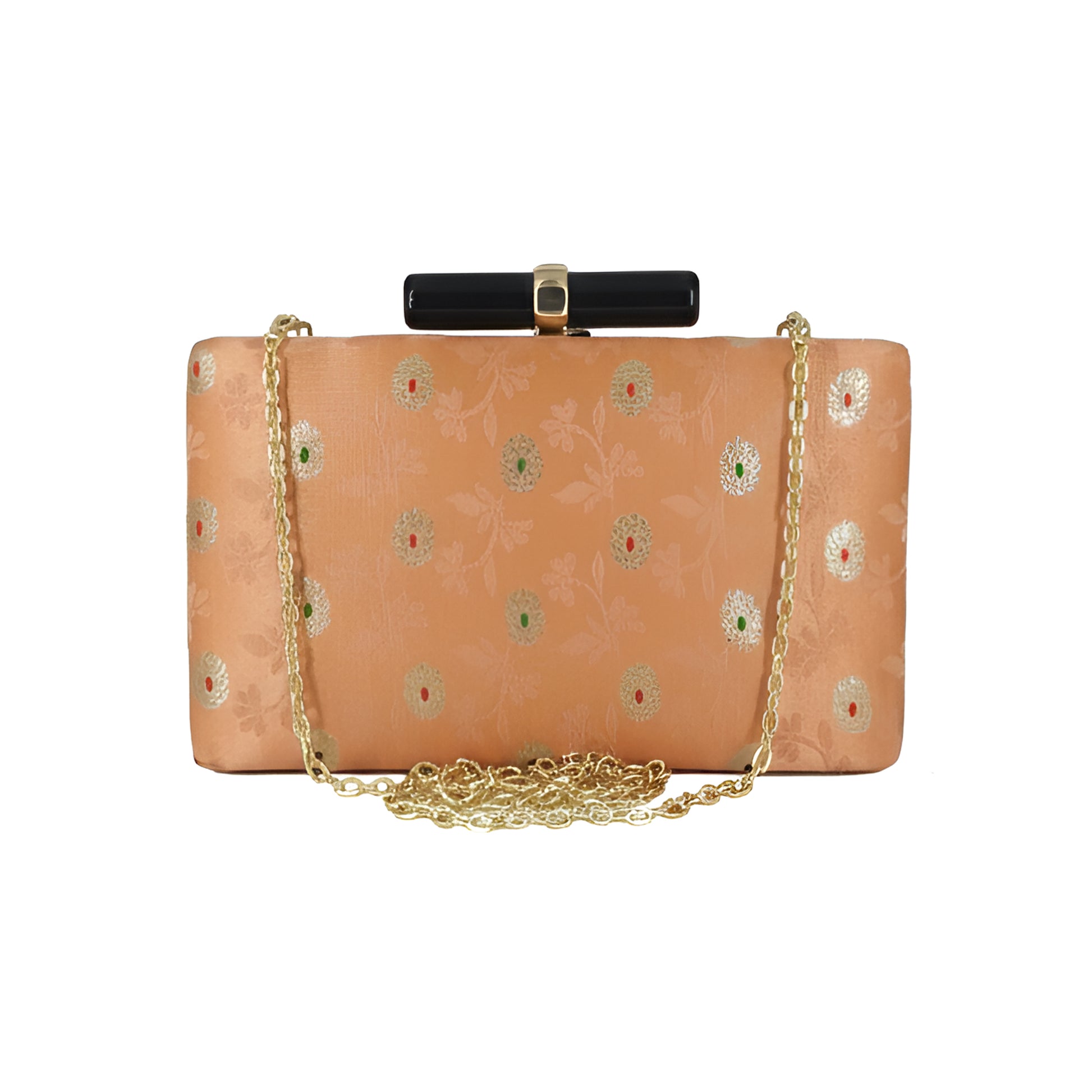 Artklim Peach Floral Ethnic Embroidered Clutch