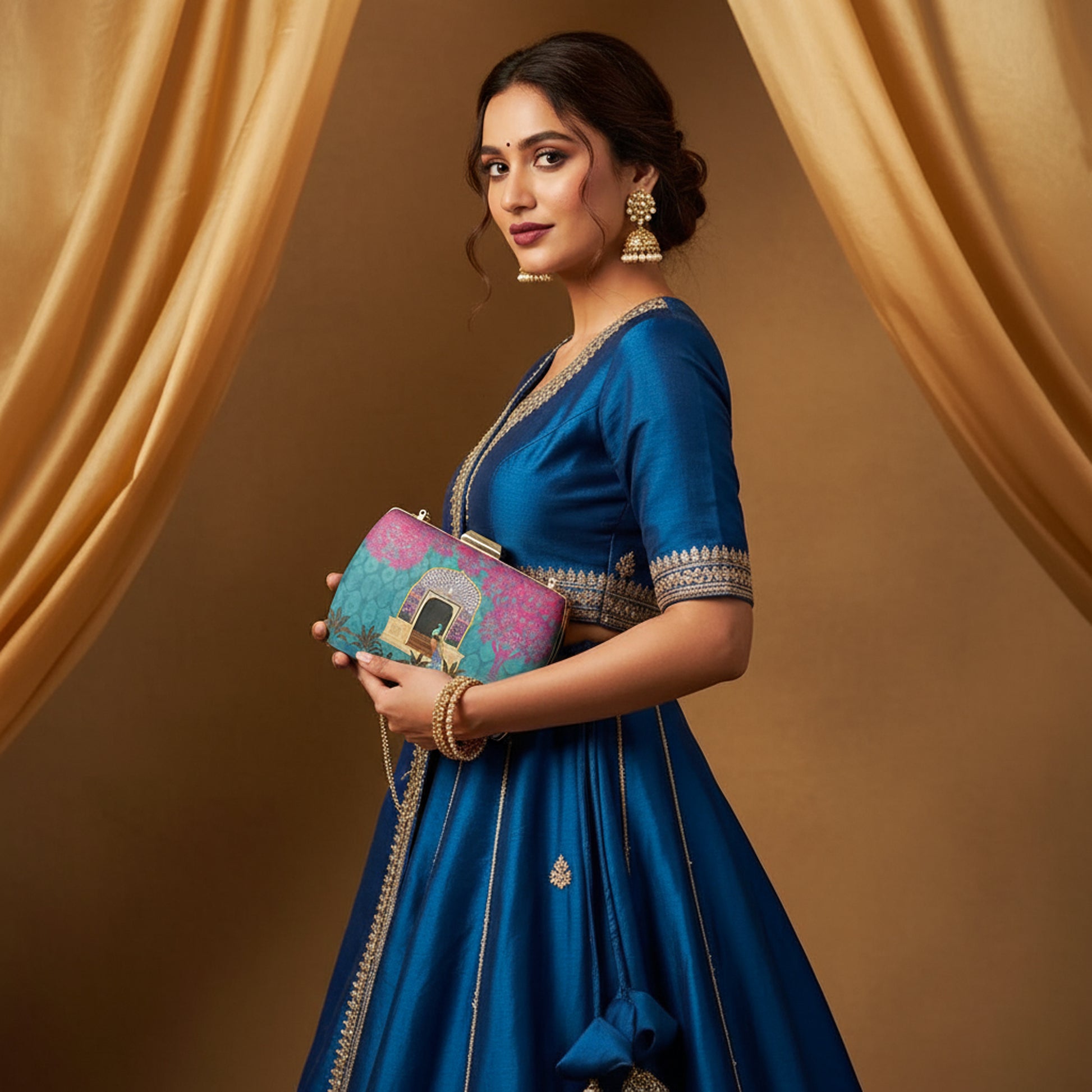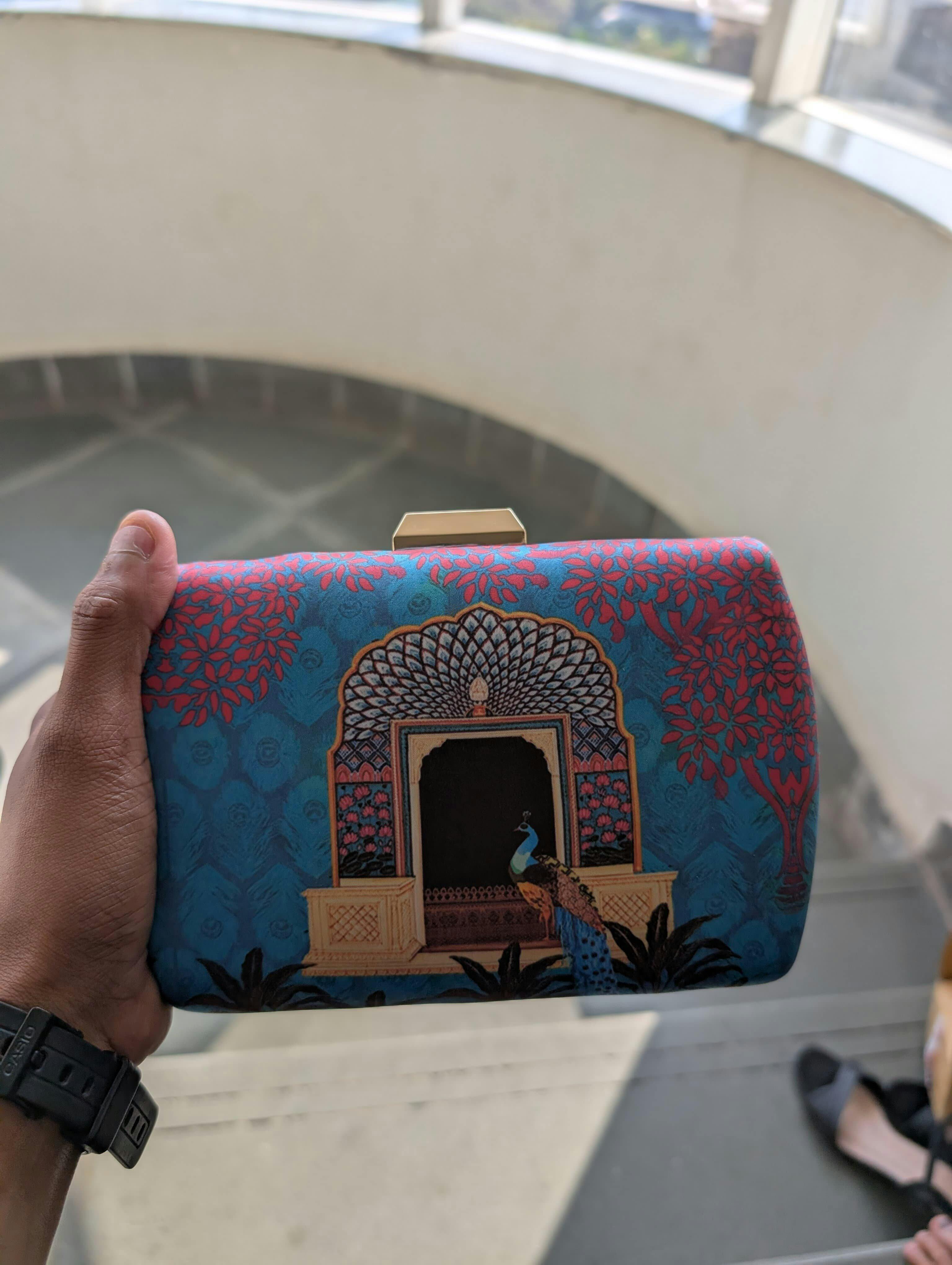 Artklim Peacock Printed Clutch