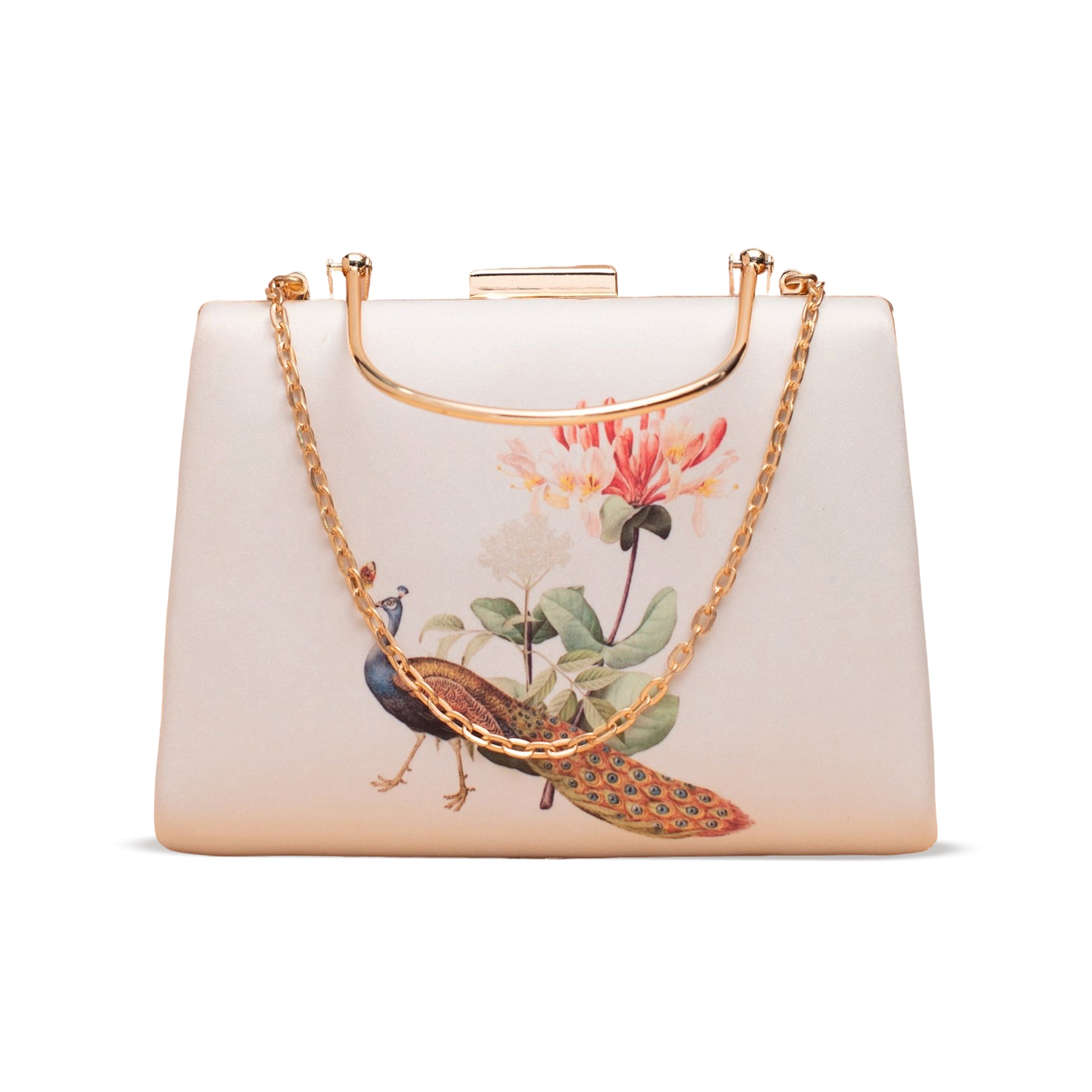 Artklim Peacock With Flower Printed Clutch