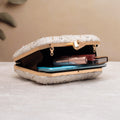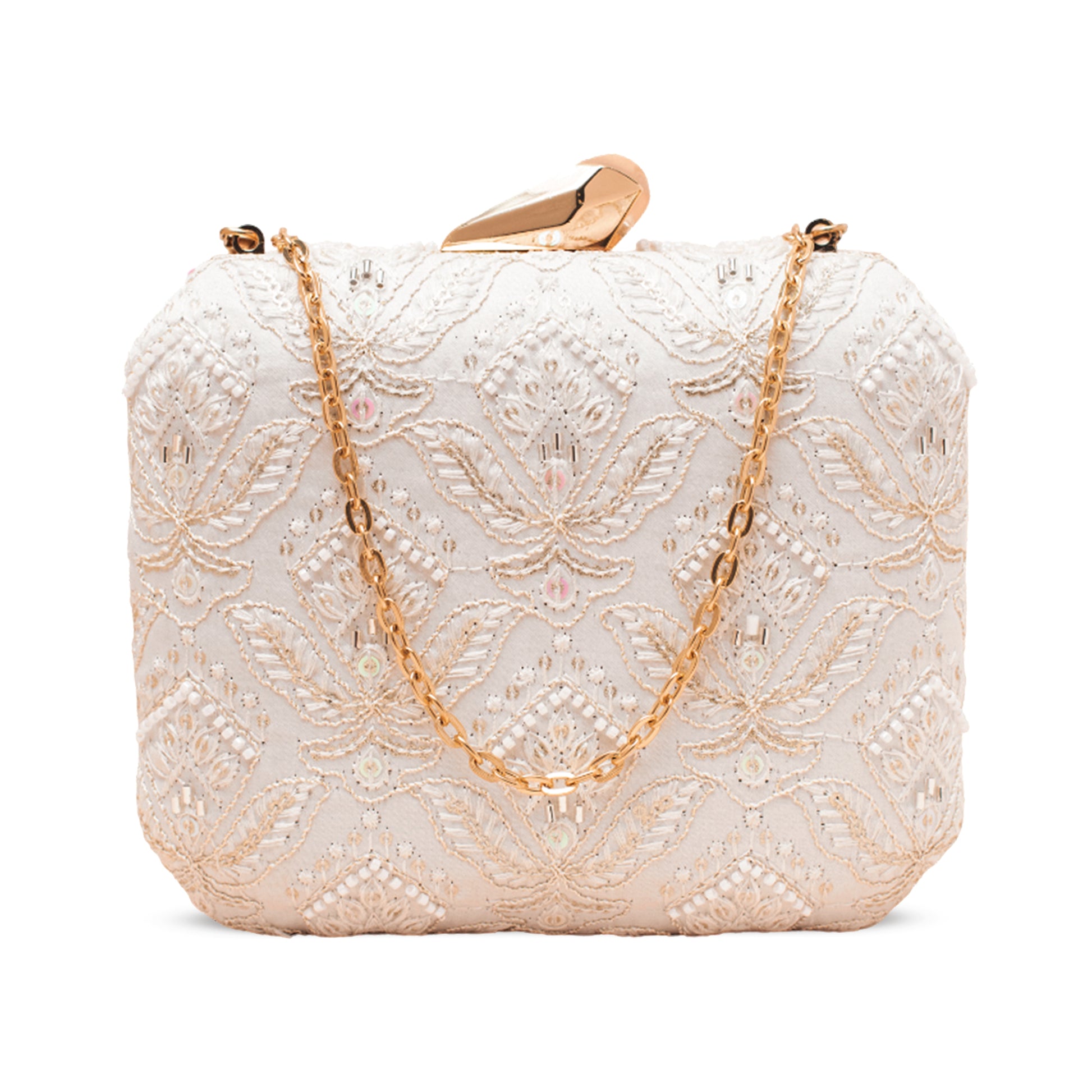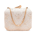 Add a burst of personality to every outing with these handcrafted clutches. Designed to blend fashion and art, each piece is a mini canvas—Embroided finished with a luxe hard-case body, and accented with a gleaming gold clasp and chain.