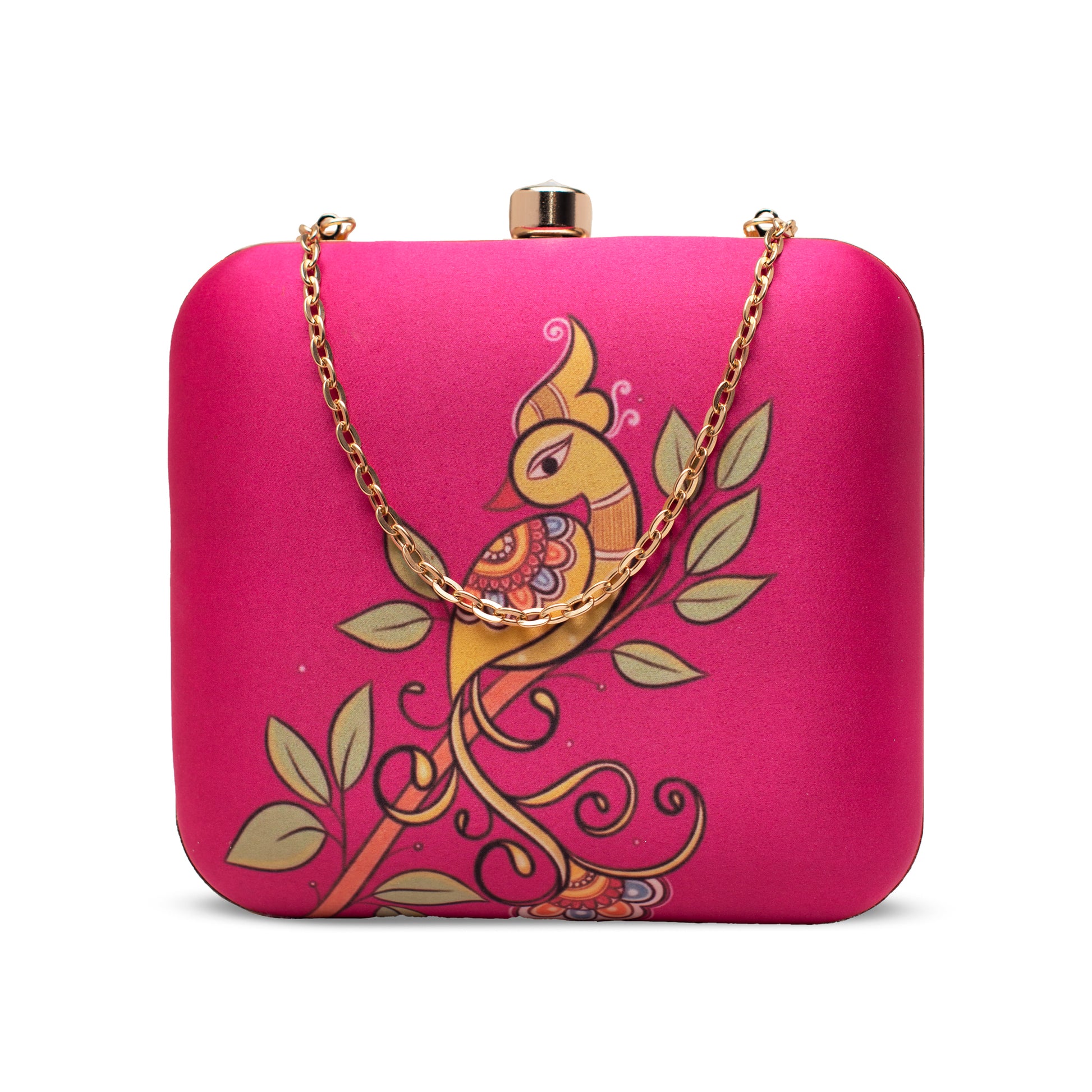 Add a burst of personality to every outing with these handcrafted clutches. Designed to blend fashion and art, each piece is a mini canvas—printed with vibrant illustrations, finished with a luxe hard-case body, and accented with a gleaming gold clasp and chain