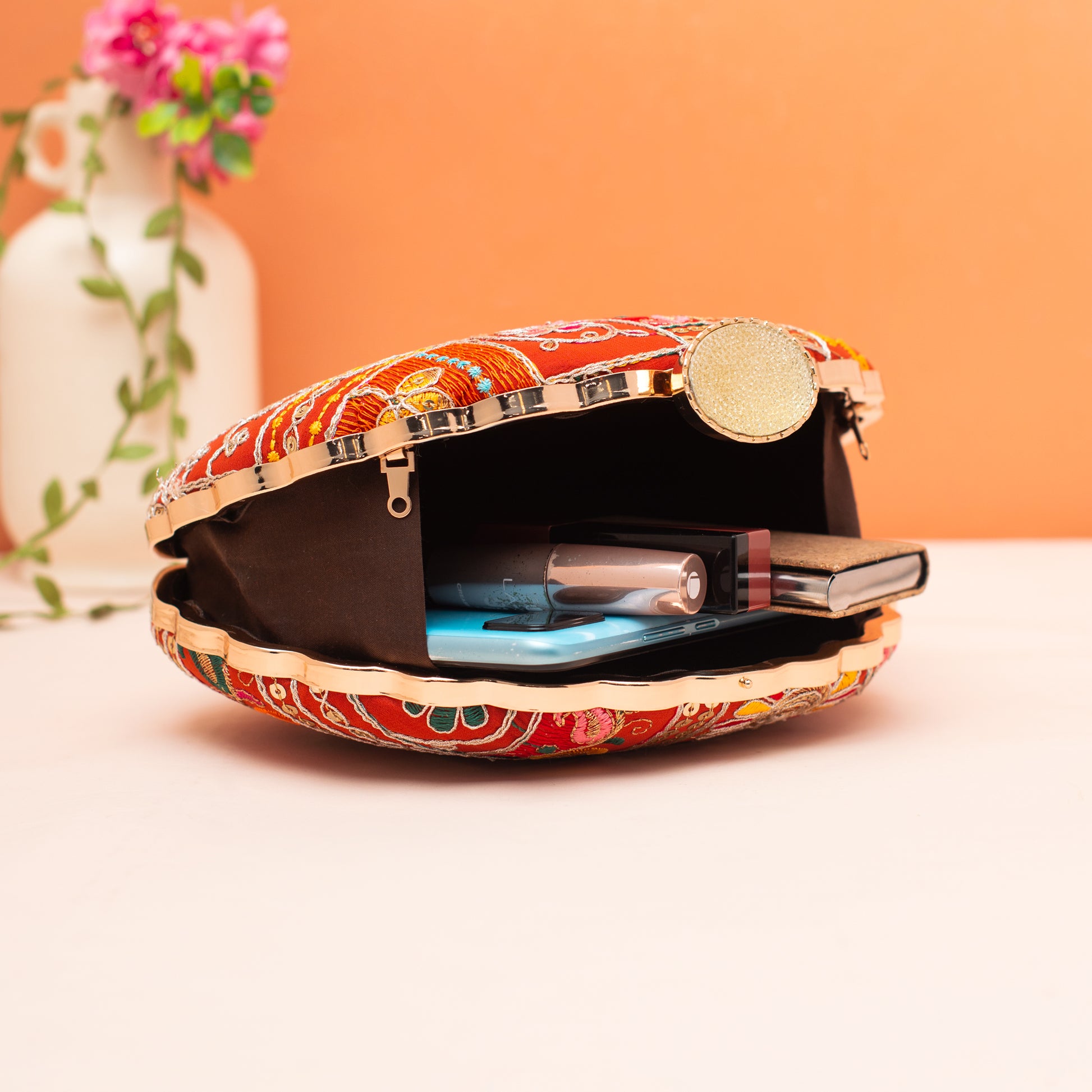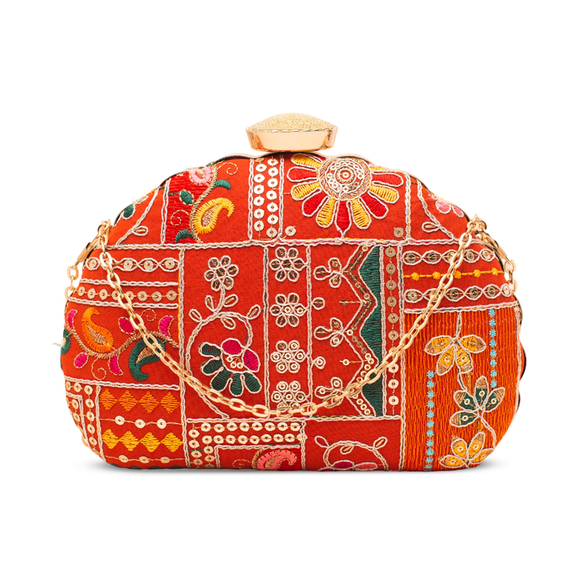 Artklim Red Sequins Embroidery D- Shape Clutch