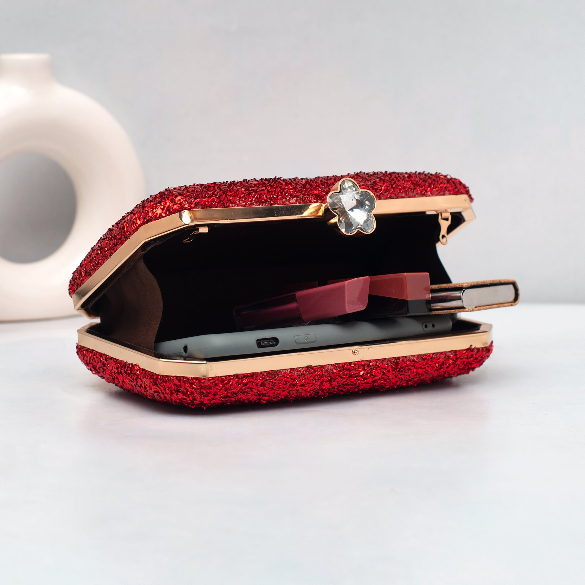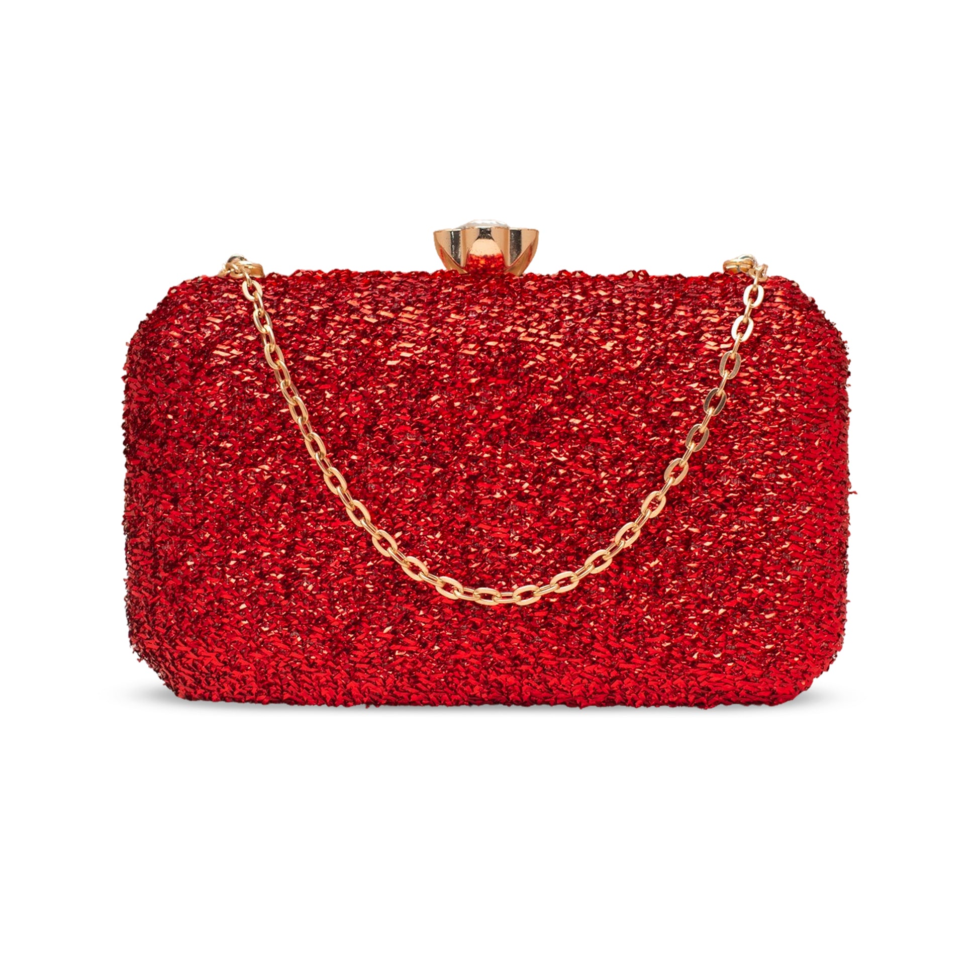 Artklim Red Glitter Embroidery Clutch