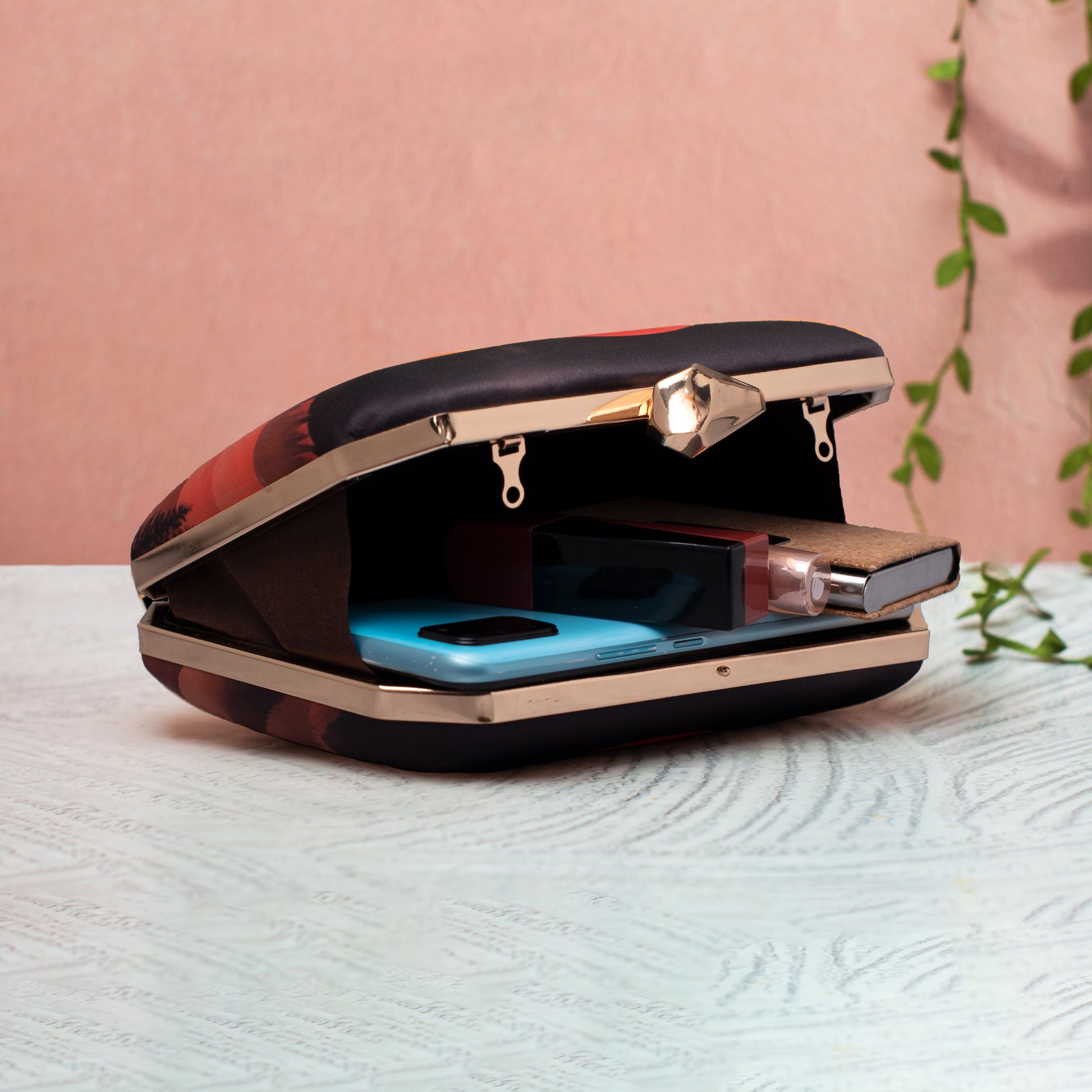 Add a burst of personality to every outing with these handcrafted clutches. Designed to blend fashion and art, each piece is a mini canvas—printed with vibrant illustrations, finished with a luxe hard-case body, and accented with a gleaming gold clasp and chain.