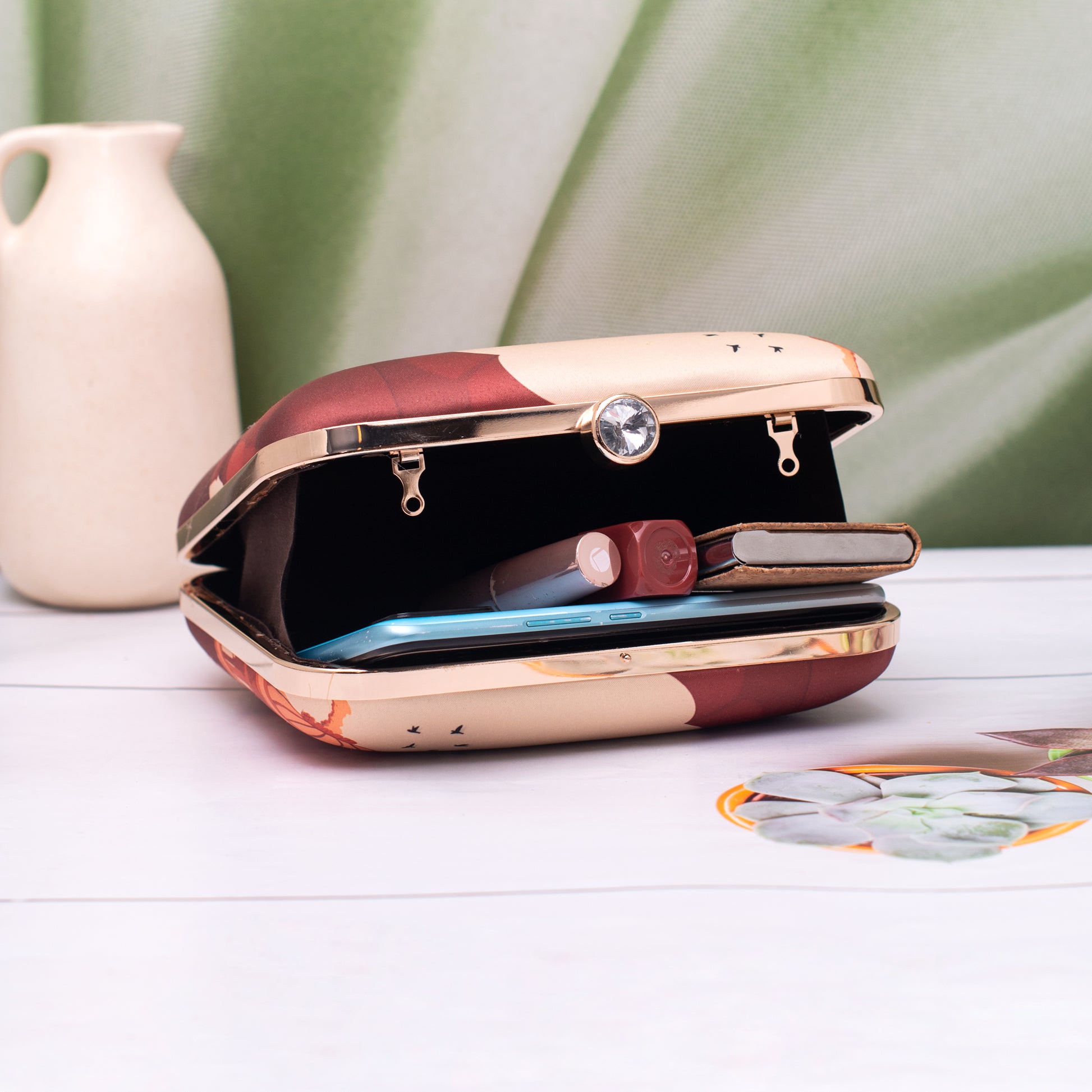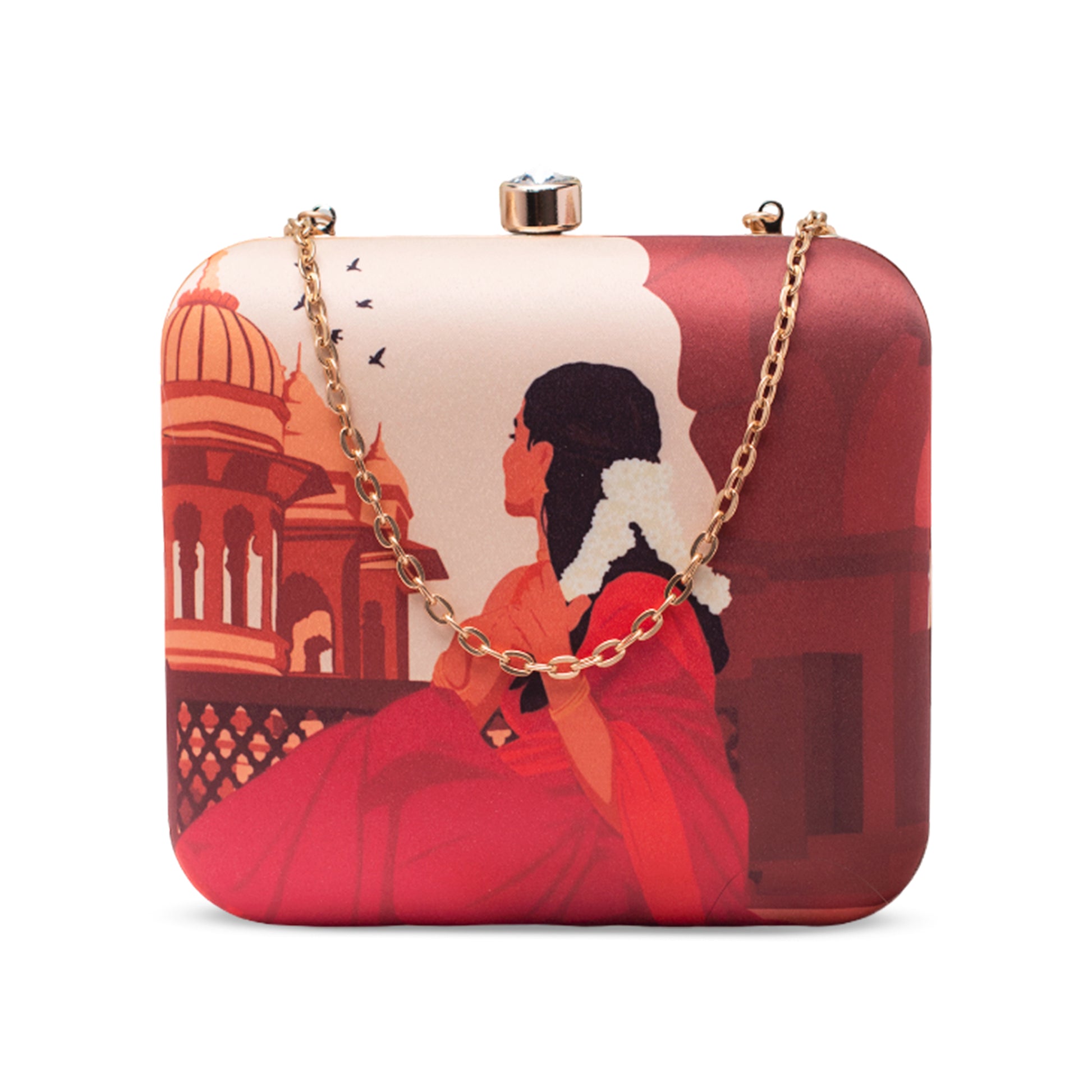 Add a burst of personality to every outing with these handcrafted clutches. Designed to blend fashion and art, each piece is a mini canvas—printed with vibrant illustrations, finished with a luxe hard-case body, and accented with a gleaming gold clasp and chain