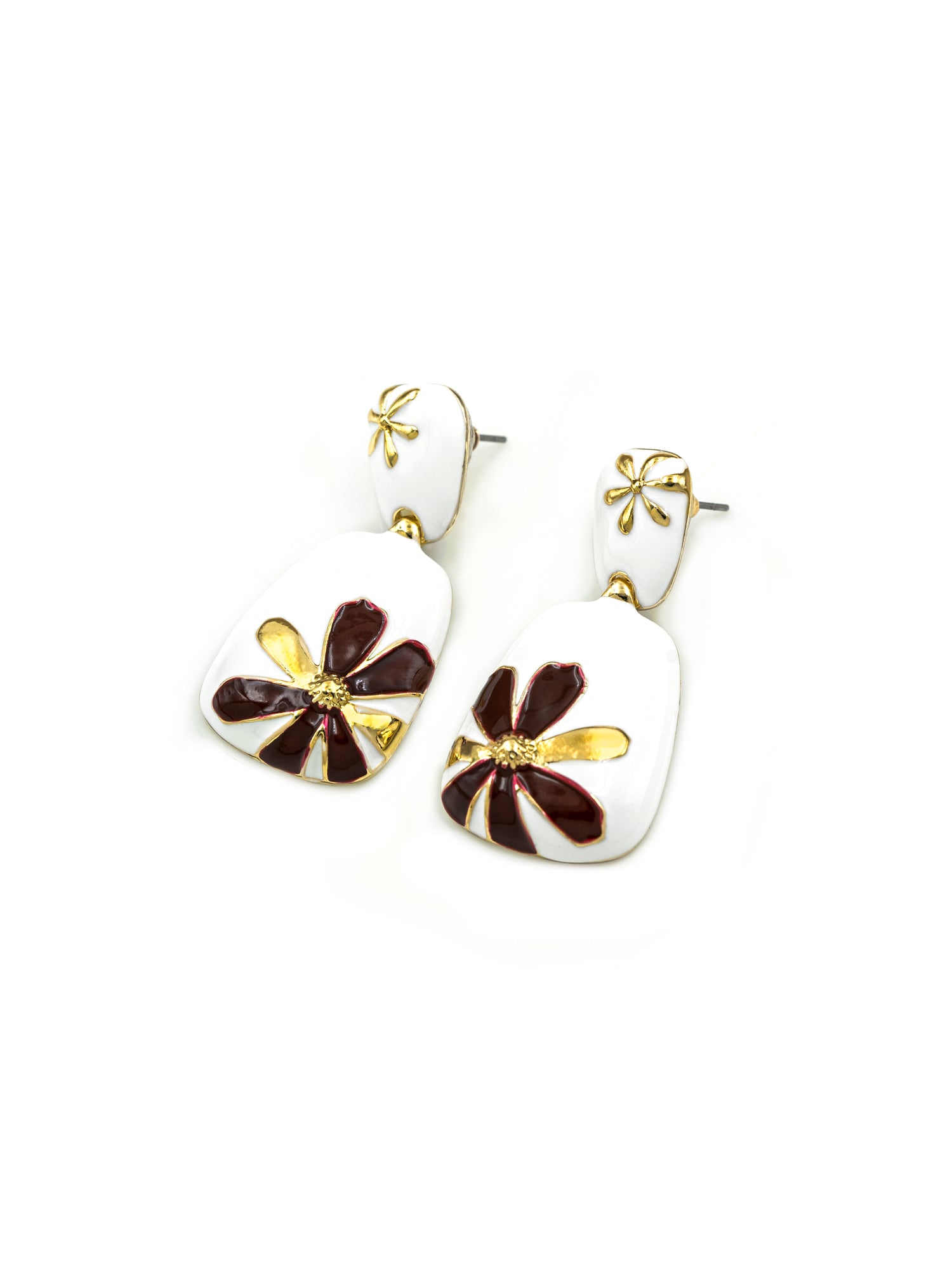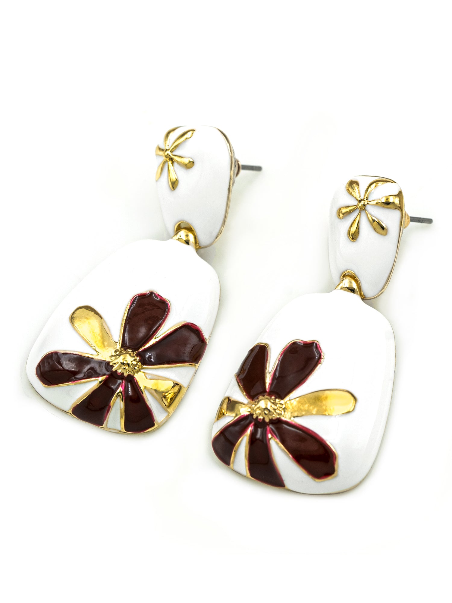 Artklim Red & White Floral Drop Anti Tarnish Earrings