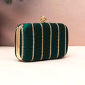 Artklim Regal Forest Green Satin Embroidered Clutch
