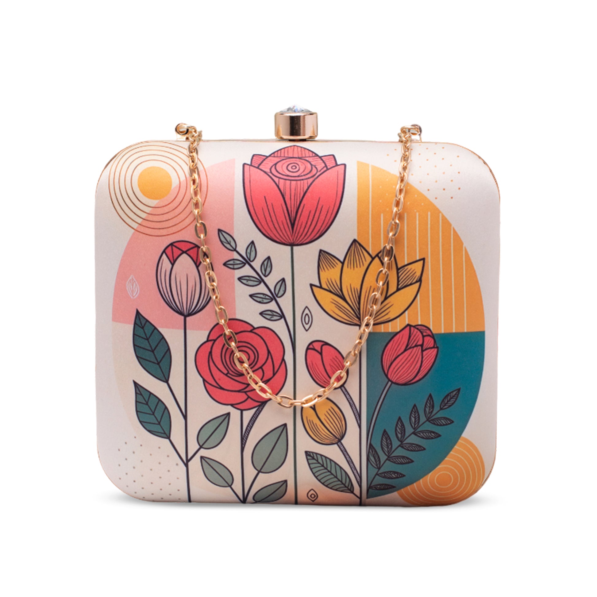 Add a burst of personality to every outing with these handcrafted clutches. Designed to blend fashion and art, each piece is a mini canvas—printed with vibrant illustrations, finished with a luxe hard-case body, and accented with a gleaming gold clasp and chain