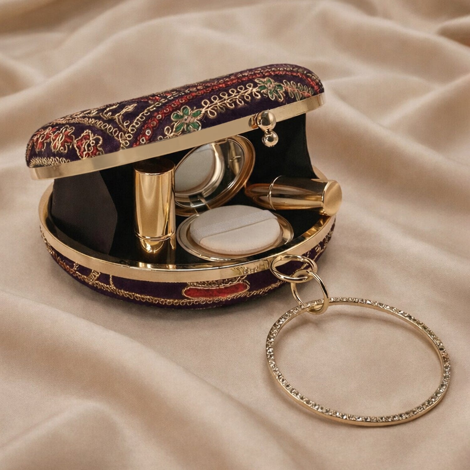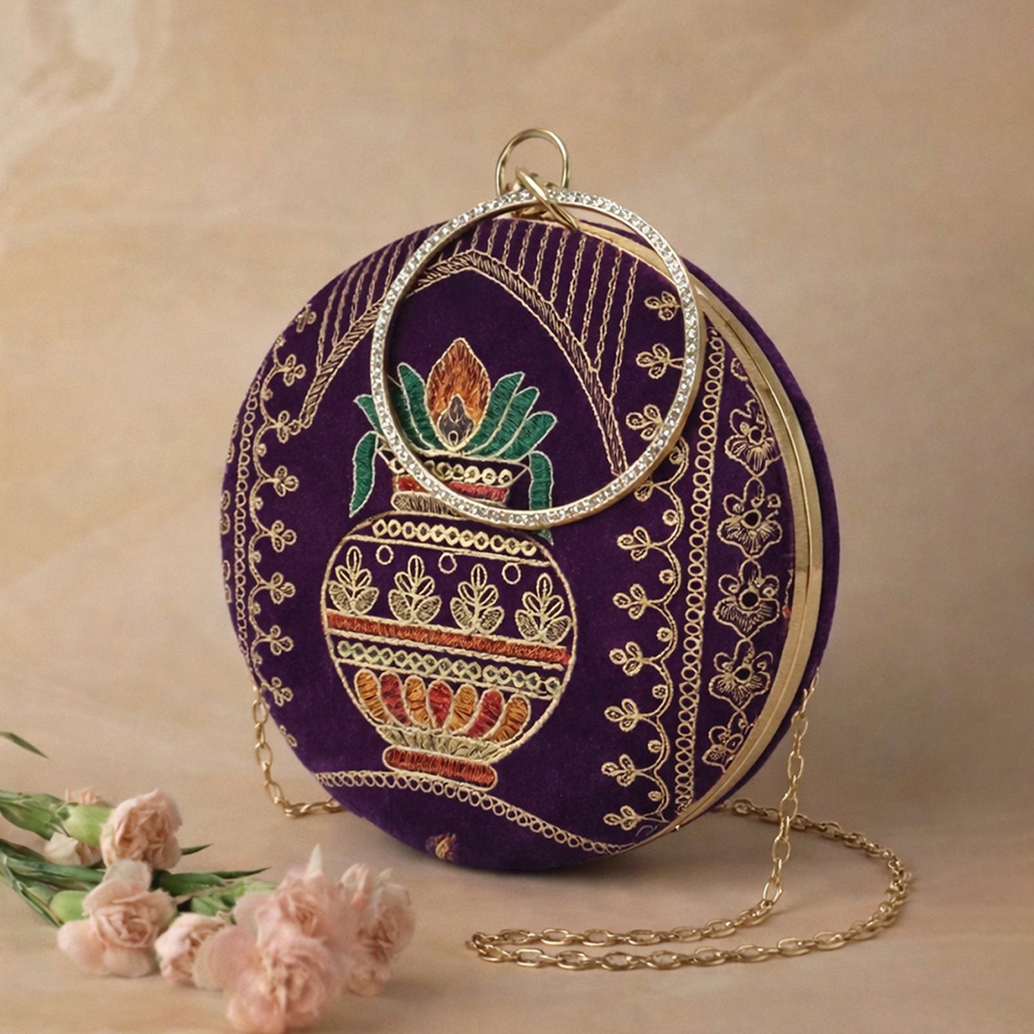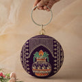 Artklim Royal Purple Round Embroidered Clutch