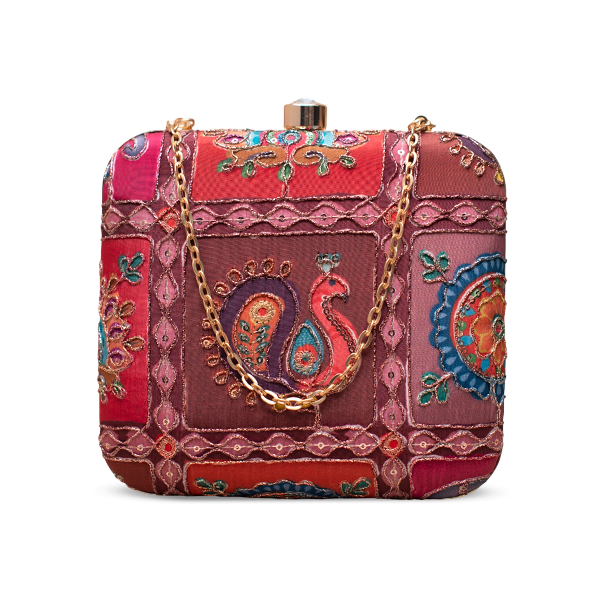 Artklim Royal Red Heritage Peacock Embroidered Clutch
