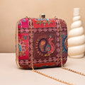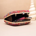 Add a burst of personality to every outing with these handcrafted clutches. Designed to blend fashion and art, each piece is a mini canvas—fabric with vibrant illustrations, finished with a luxe hard-case body, and accented with a gleaming gold clasp and chain