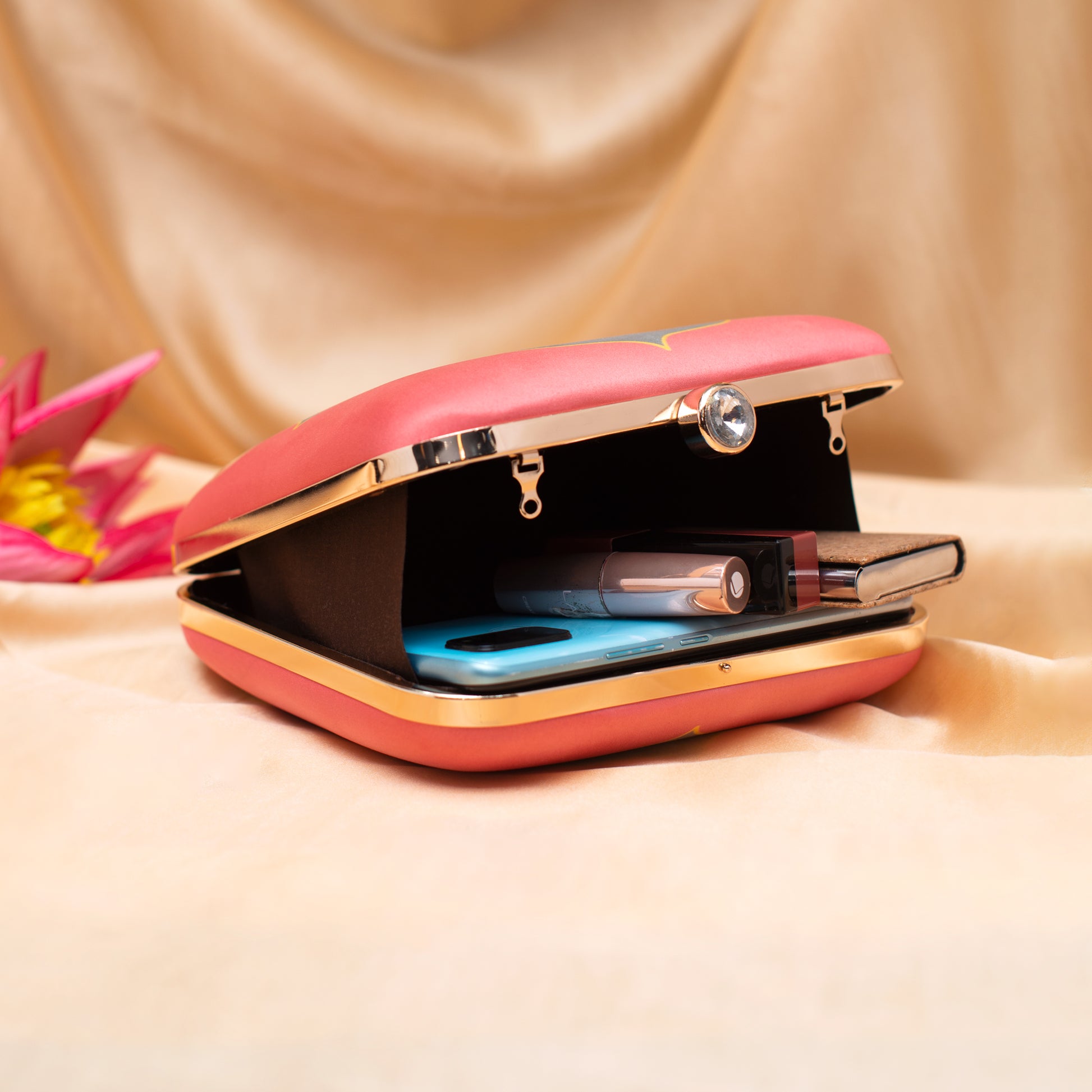 Add a burst of personality to every outing with these handcrafted clutches. Designed to blend fashion and art, each piece is a mini canvas—printed with vibrant illustrations, finished with a luxe hard-case body, and accented with a gleaming gold clasp and chain