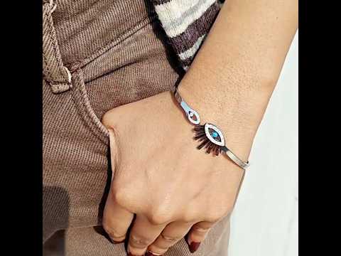 Artklim Silver Plated Evil Eye Bangle Bracelet
