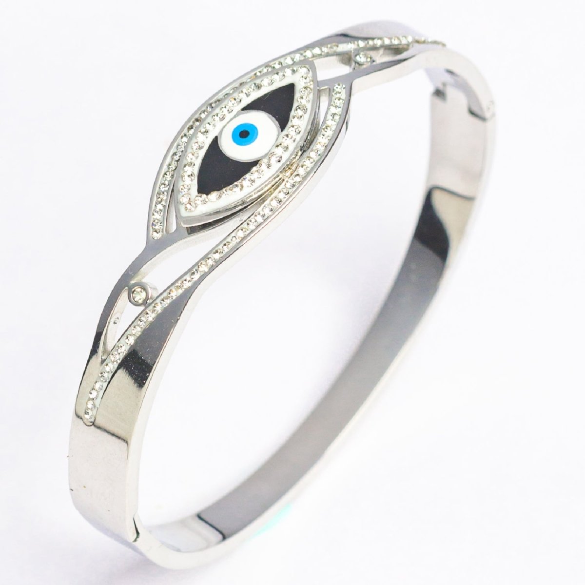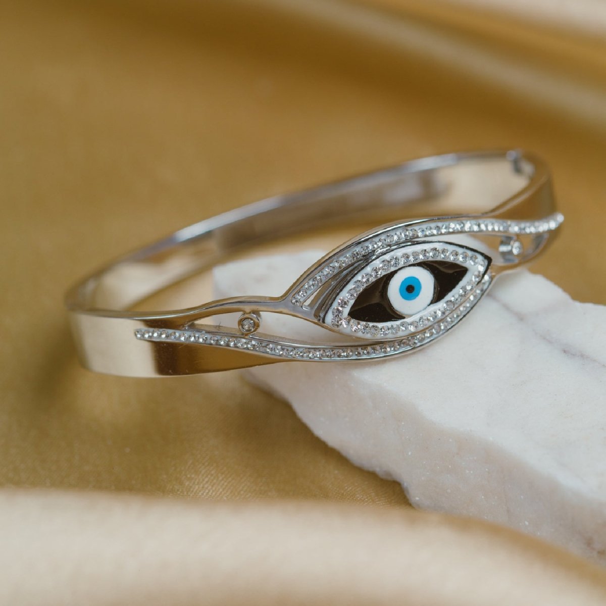 Artklim Silver Plated Evil Eye Bangle Bracelet
