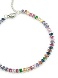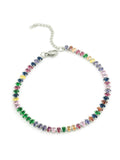 Artklim Silver-Toned Rainbow Crystal Anti Tarnish Anklet
