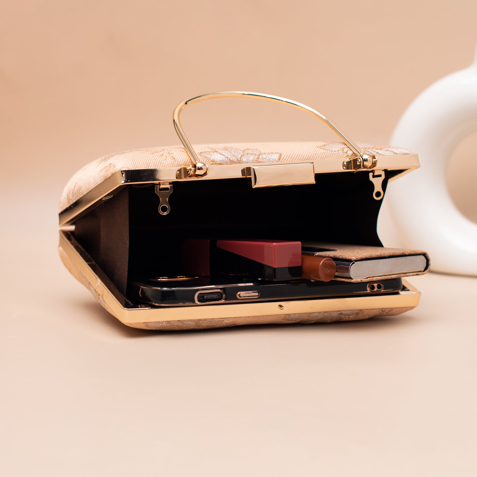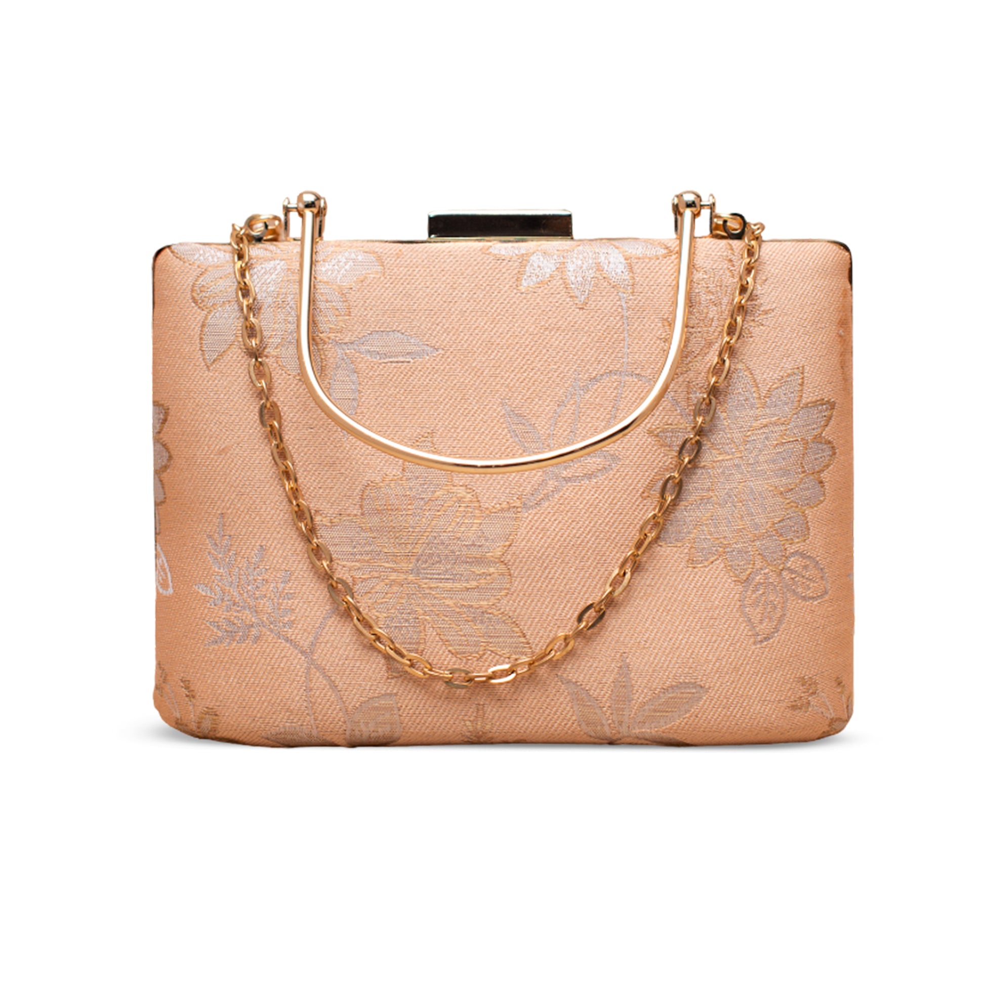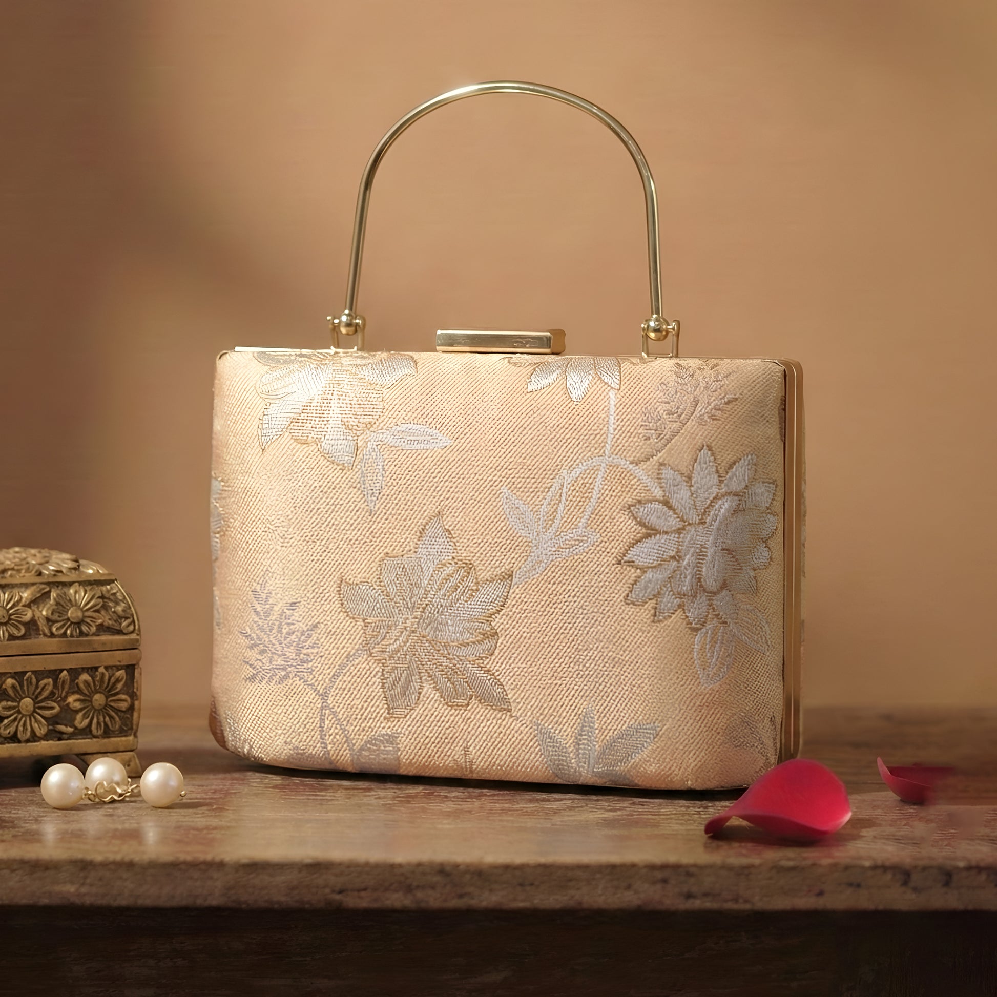 Artklim Soft Champagne Gold Floral Embroidered Clutch