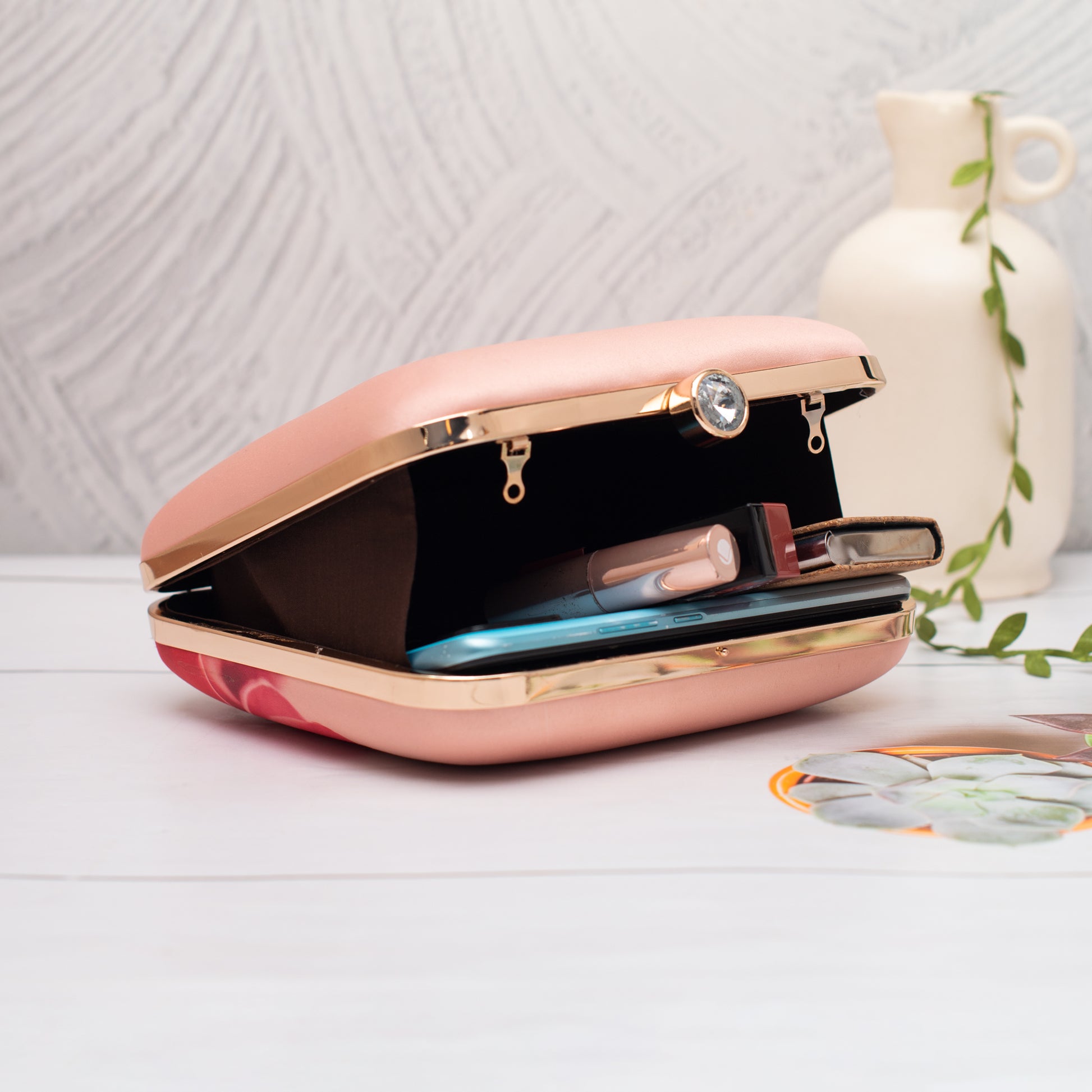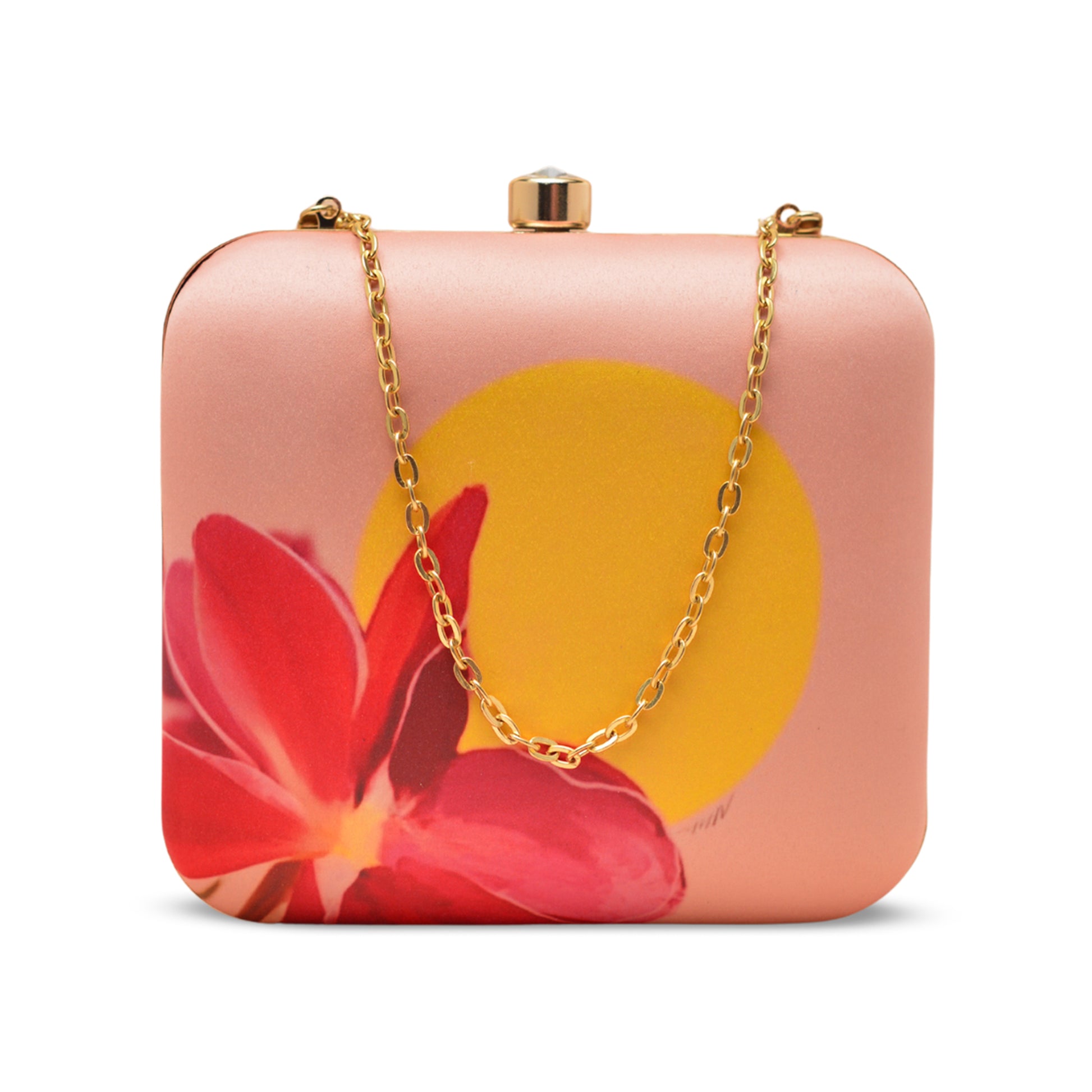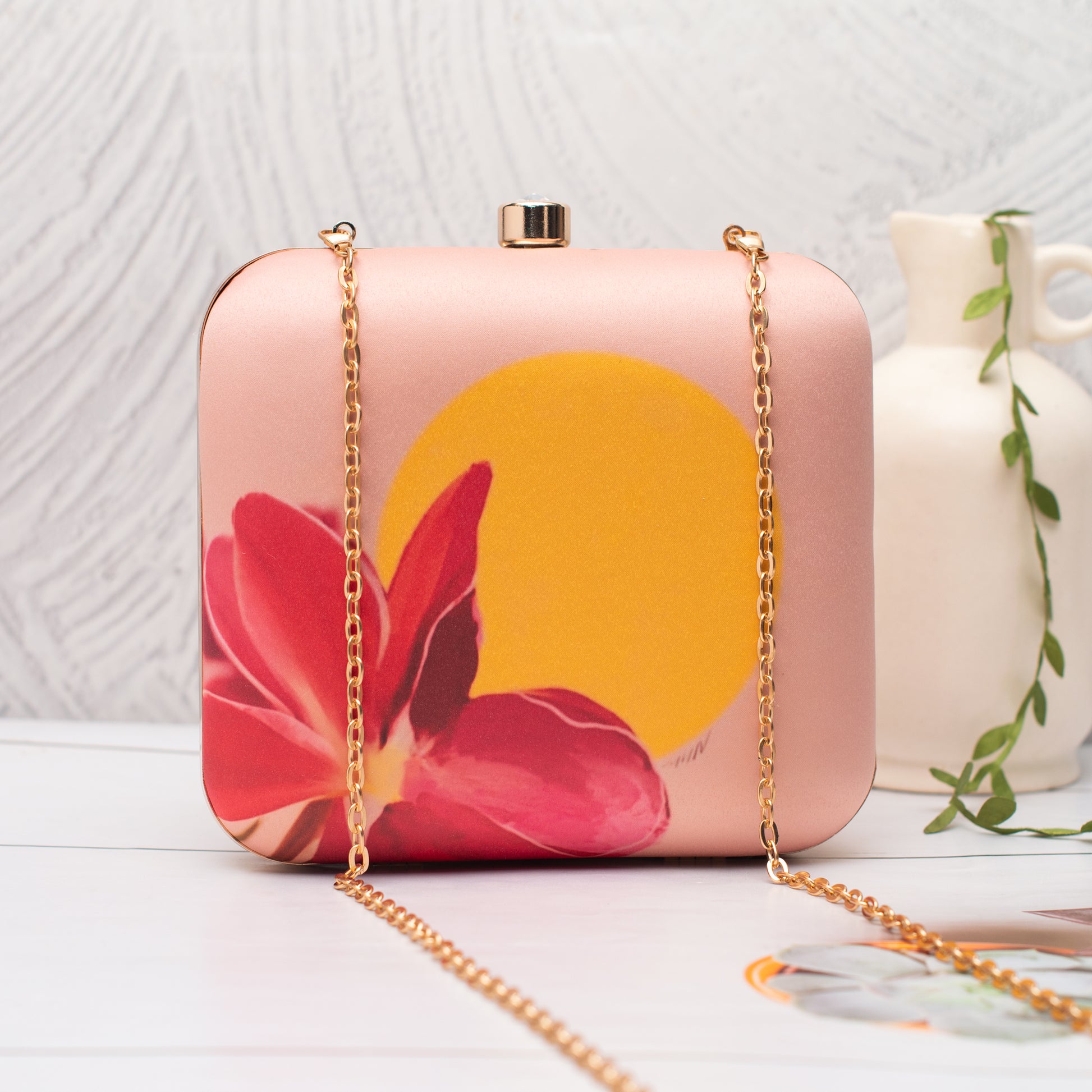 Add a burst of personality to every outing with these handcrafted clutches. Designed to blend fashion and art, each piece is a mini canvas—printed with vibrant illustrations, finished with a luxe hard-case body, and accented with a gleaming gold clasp and chain