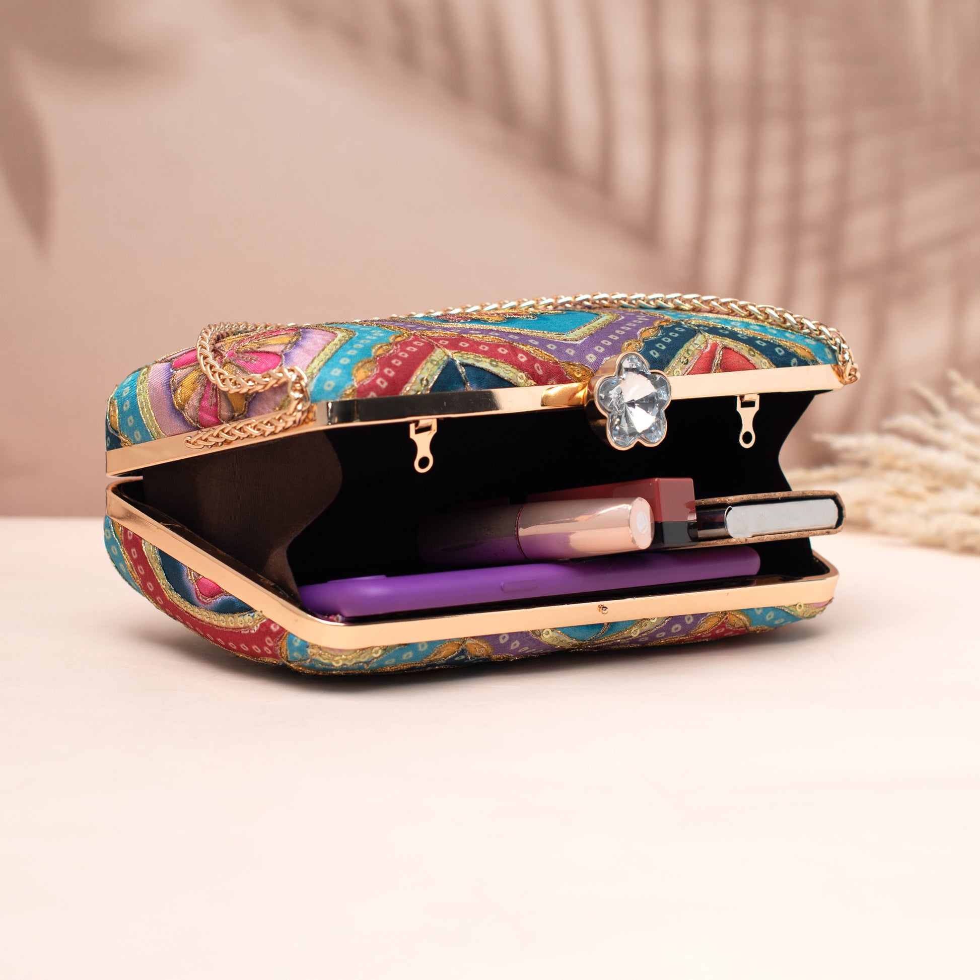 Artklim Turquoise & Multicolor Lotus Motif Clutch