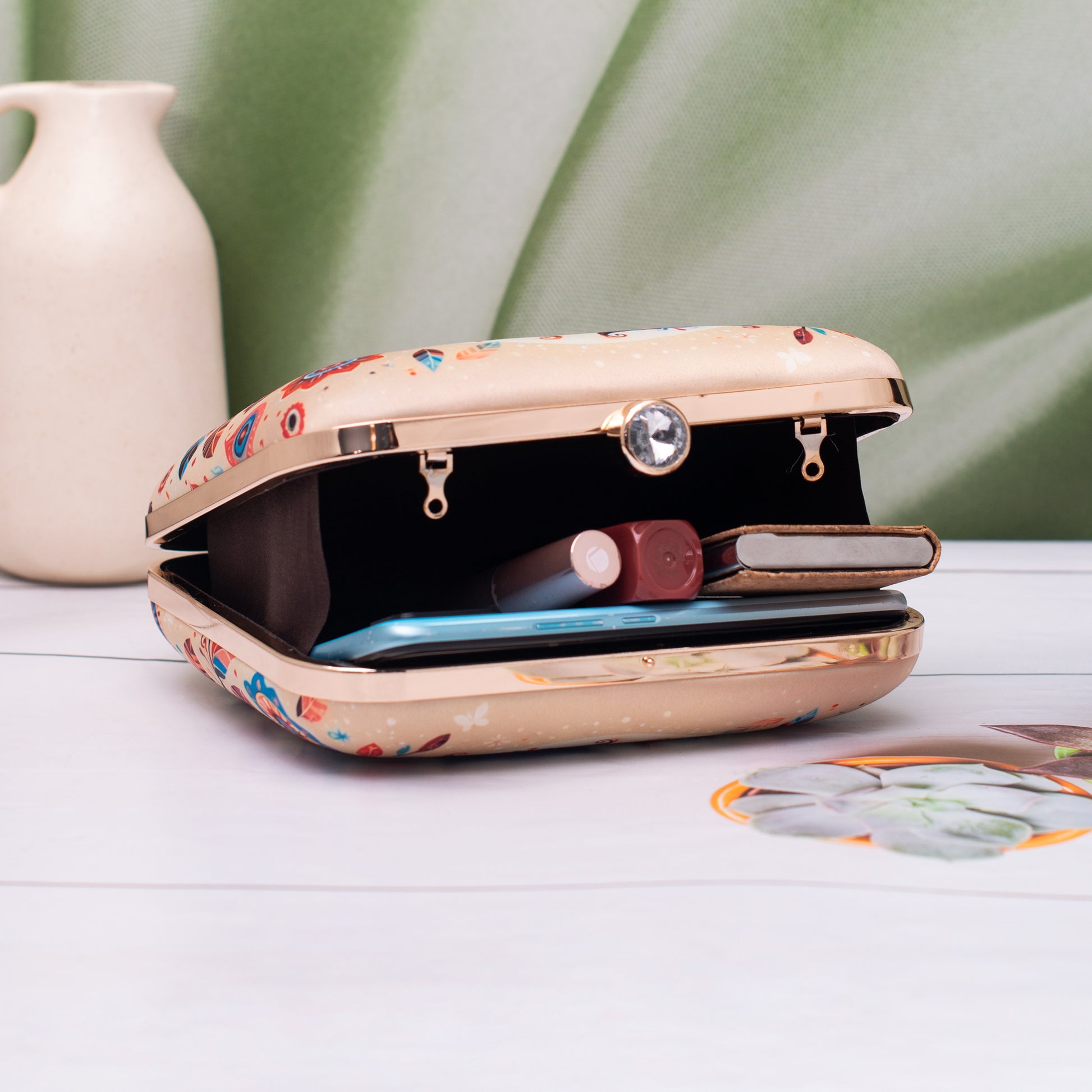 Add a burst of personality to every outing with these handcrafted clutches. Designed to blend fashion and art, each piece is a mini canvas—printed with vibrant illustrations, finished with a luxe hard-case body, and accented with a gleaming gold clasp and chain