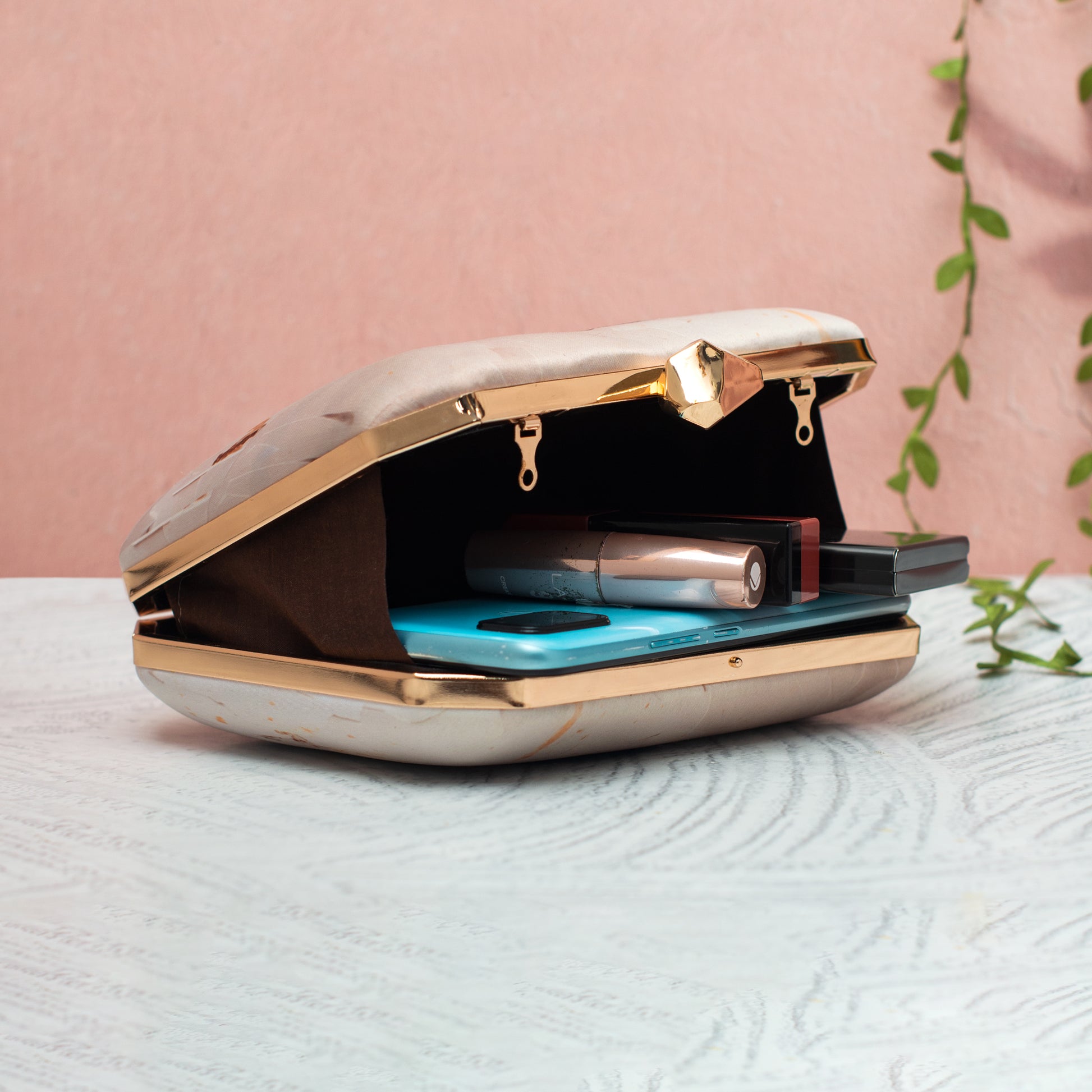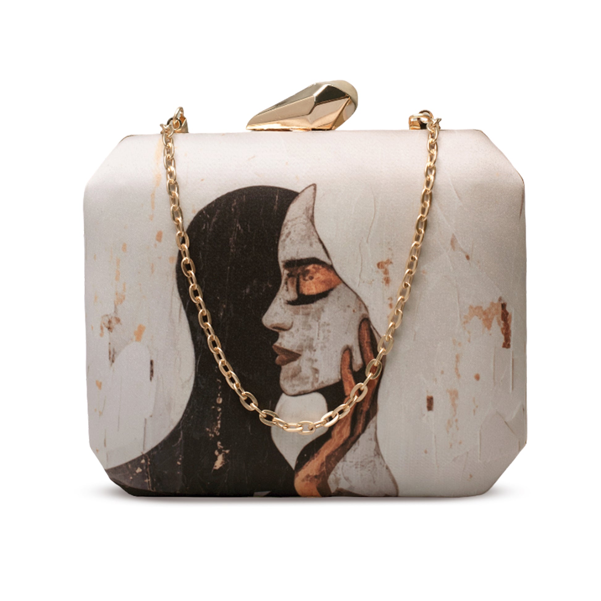 Add a burst of personality to every outing with these handcrafted clutches. Designed to blend fashion and art, each piece is a mini canvas—printed with vibrant illustrations, finished with a luxe hard-case body, and accented with a gleaming gold clasp and chain.