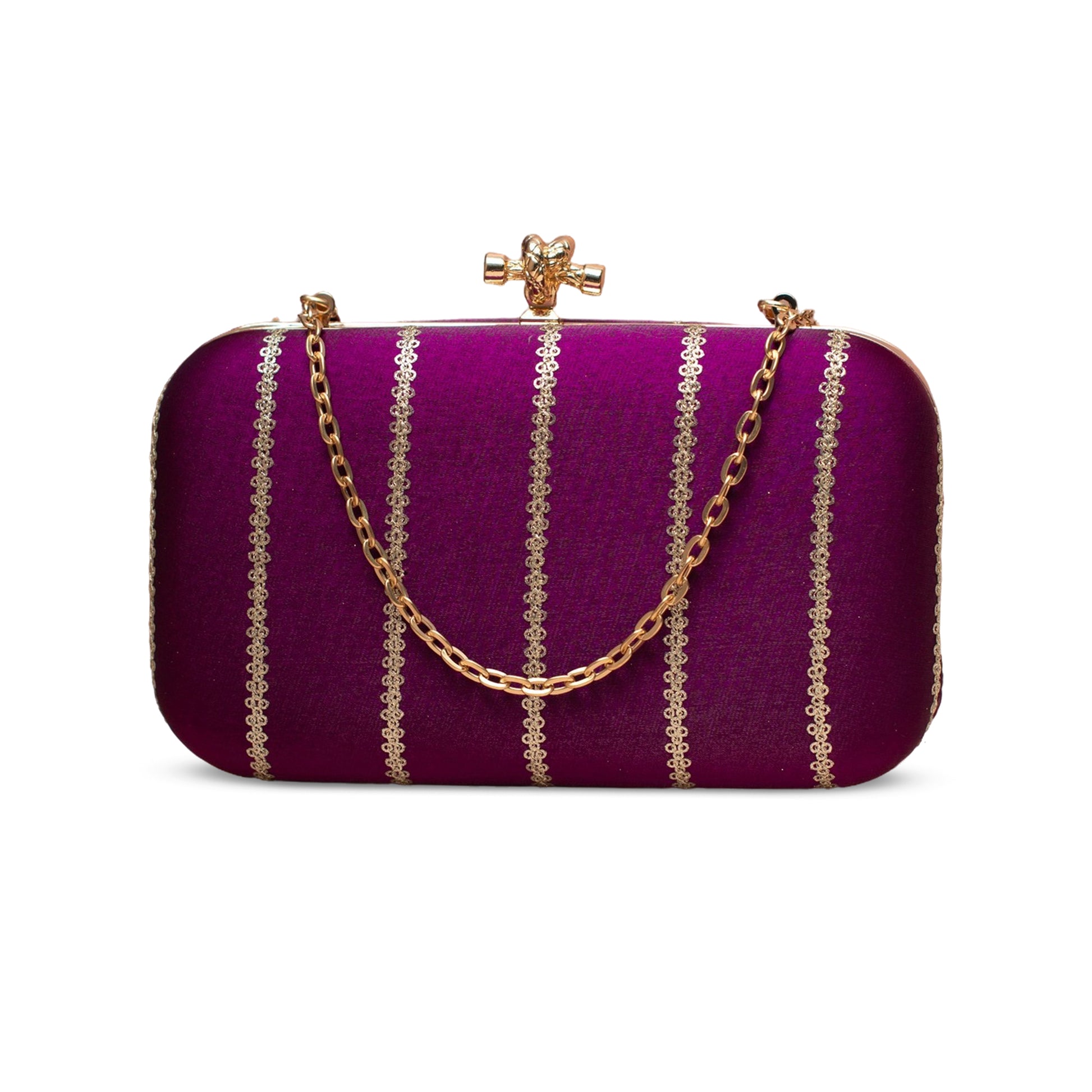 Artklim Velvet Violet Gold-Detail Embroidered Clutch