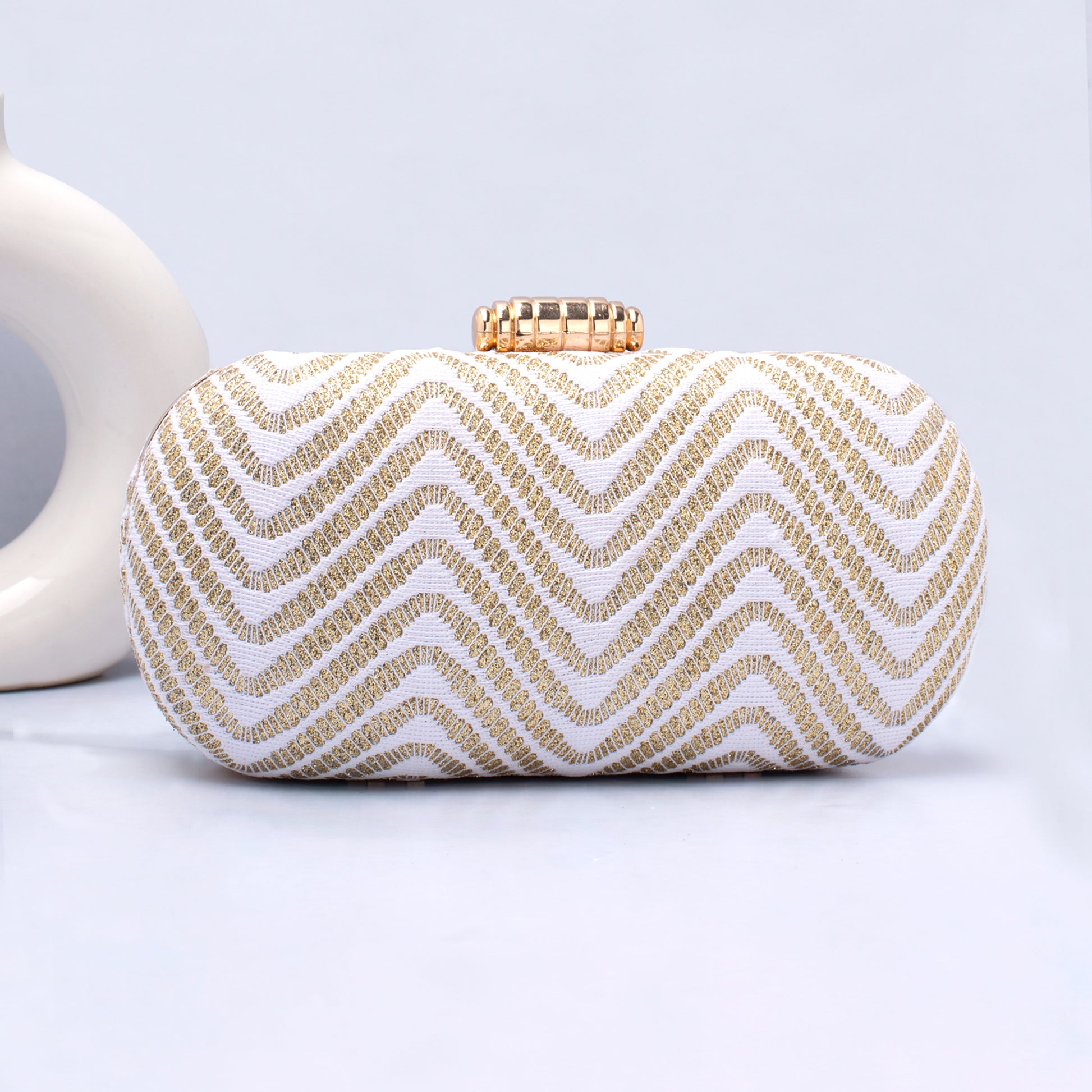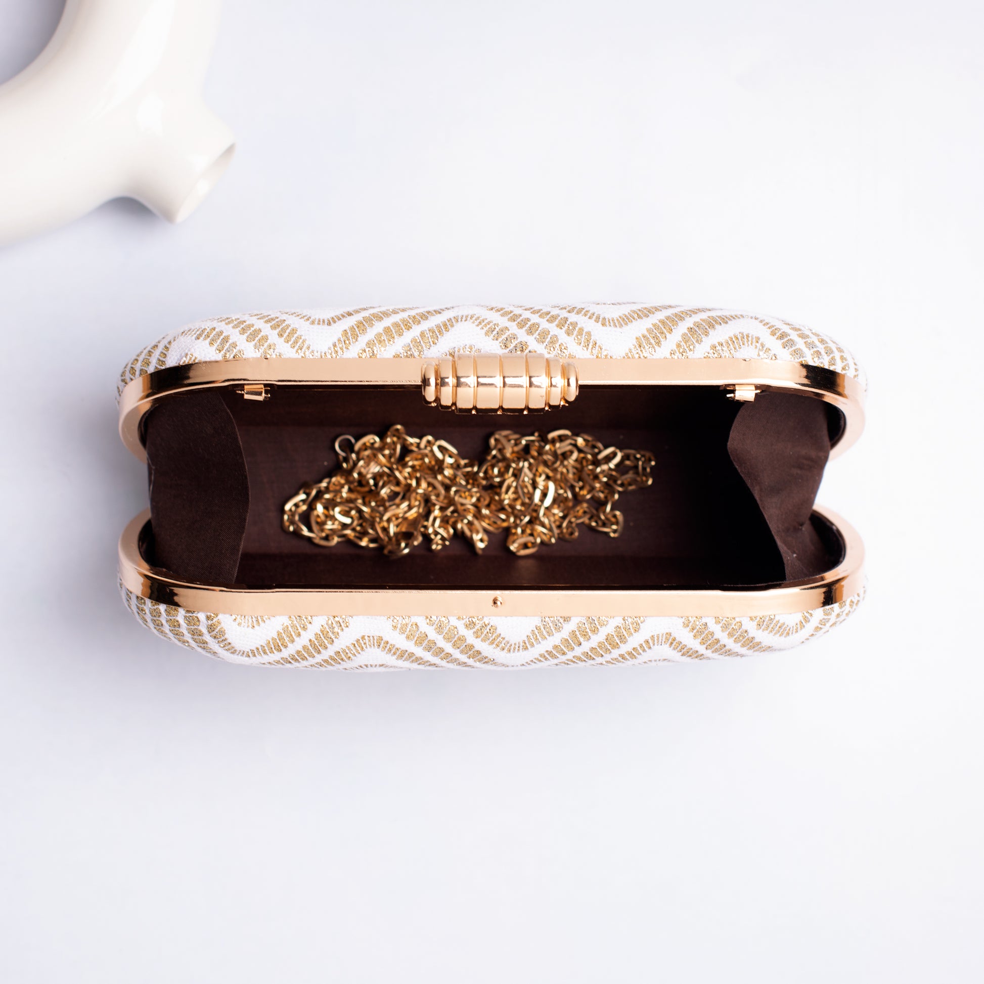 Artklim White Based Golden Threadwork Embroidery Capsule Clutch