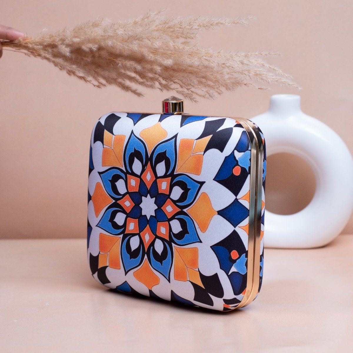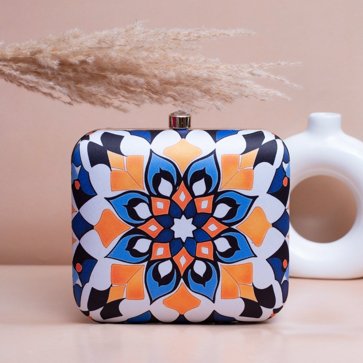 Artklim White Based Mandala Art Printed Clutch