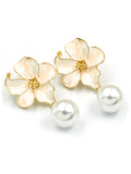 Artklim White Floral Pearl Drop Anti Tarnish Earrings
