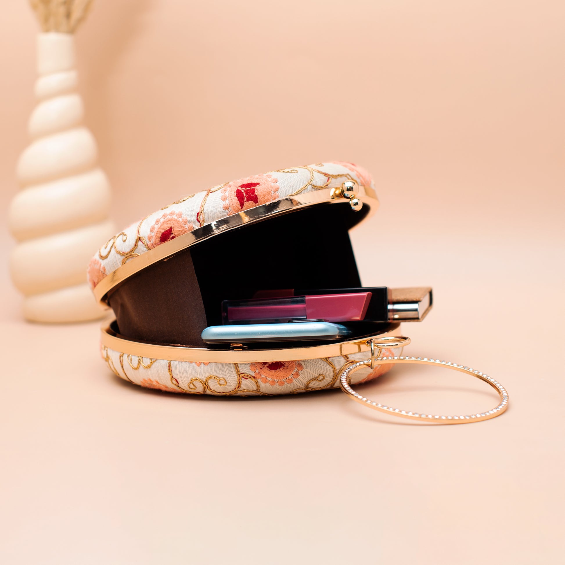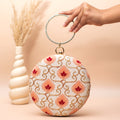 Artklim White–Peach Geometric Floral Embroidery Clutch