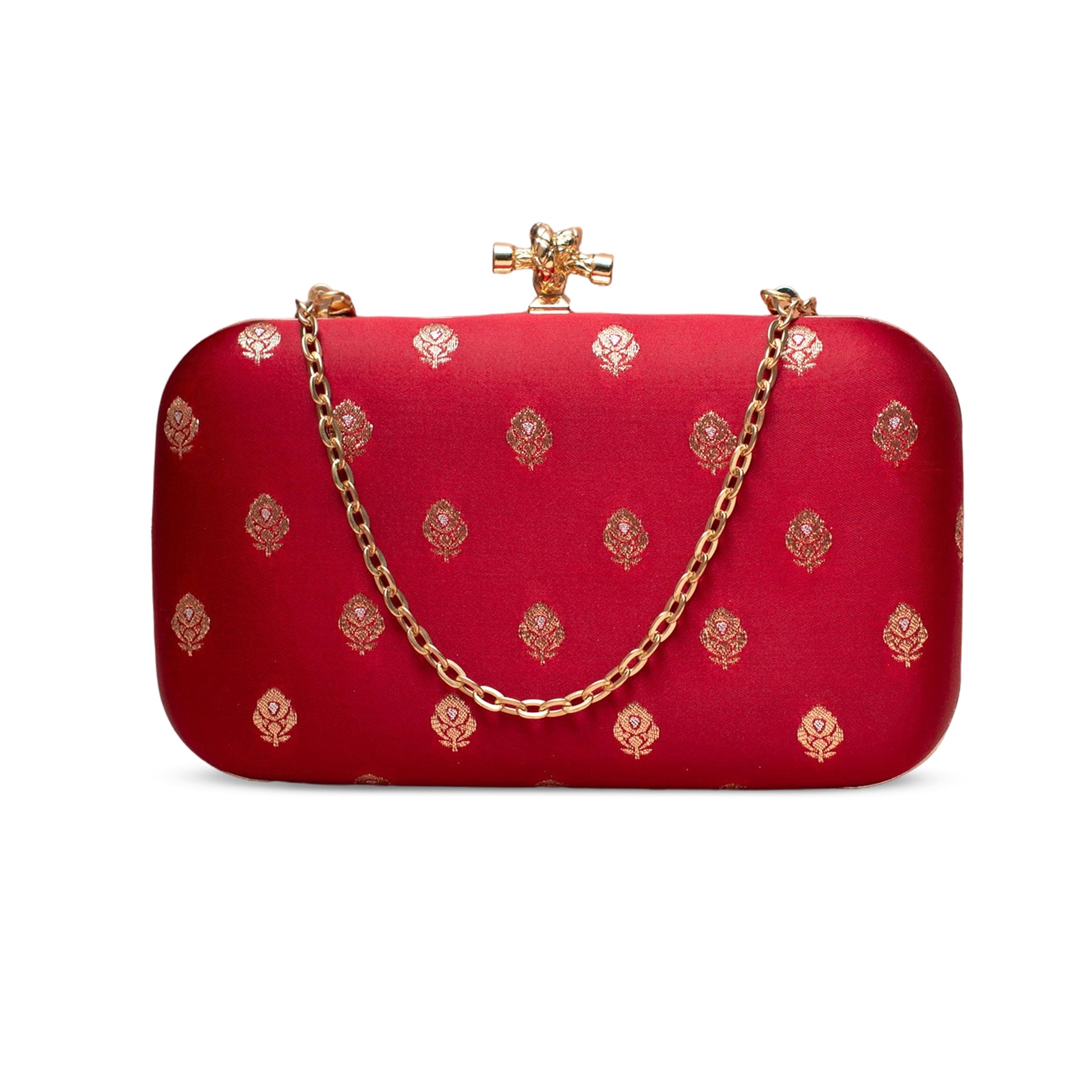 Artklim Wine Bloom Embellished Embroidered Clutch