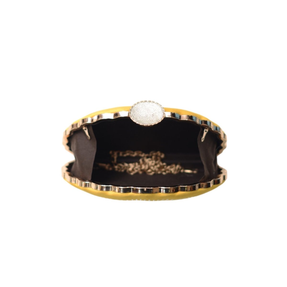 Artklim Yellow And Blue Durga Printed D-shape Clutch