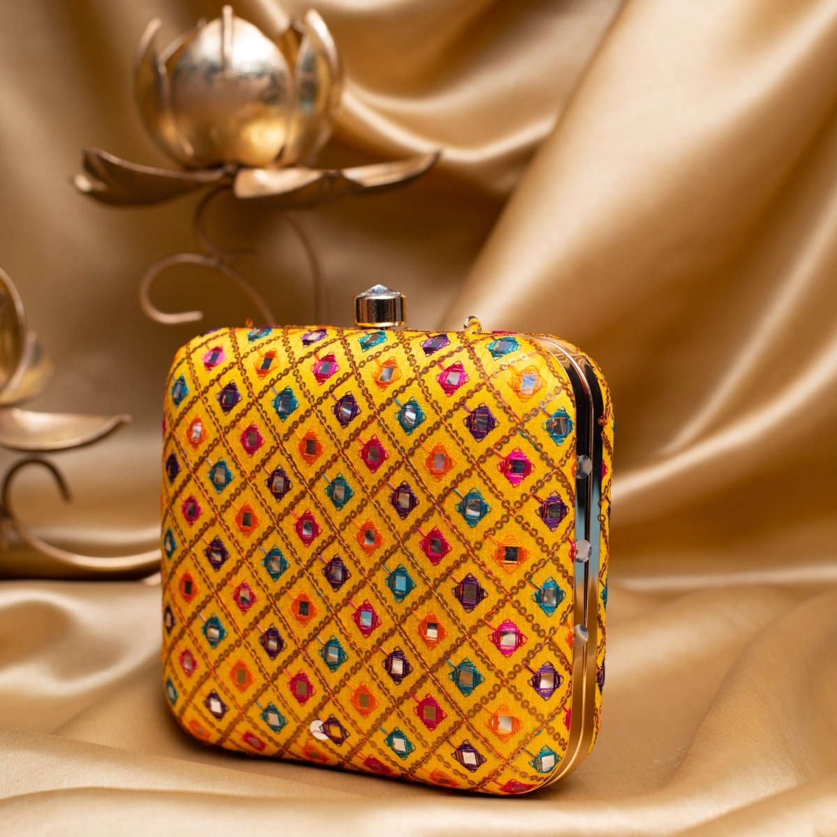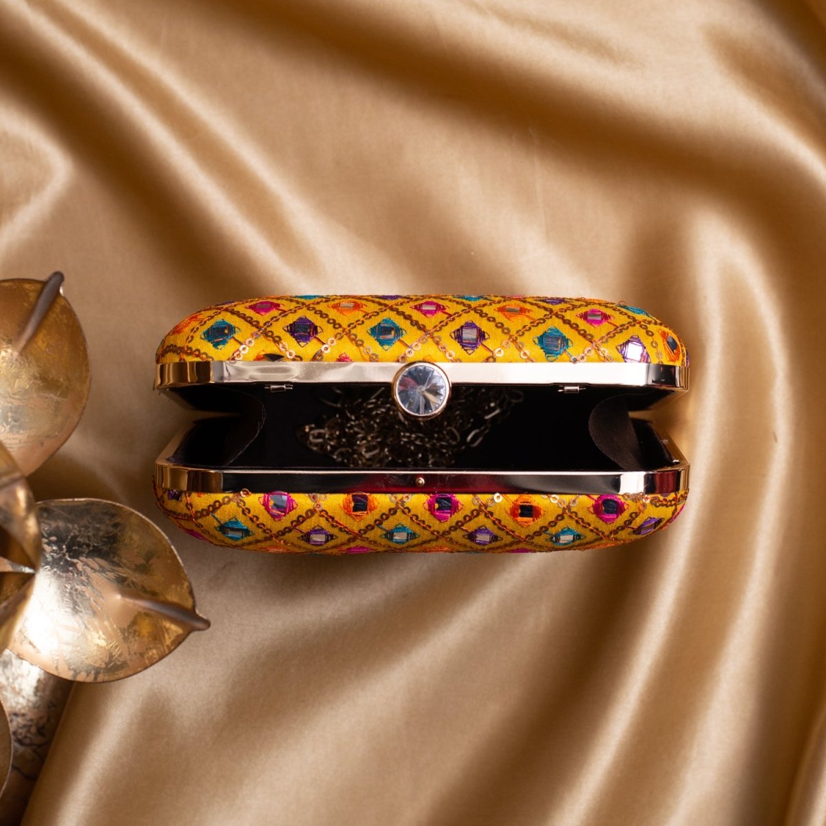 Artklim Yellow Based Multicolored Sequins Embroidery Clutch