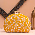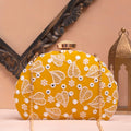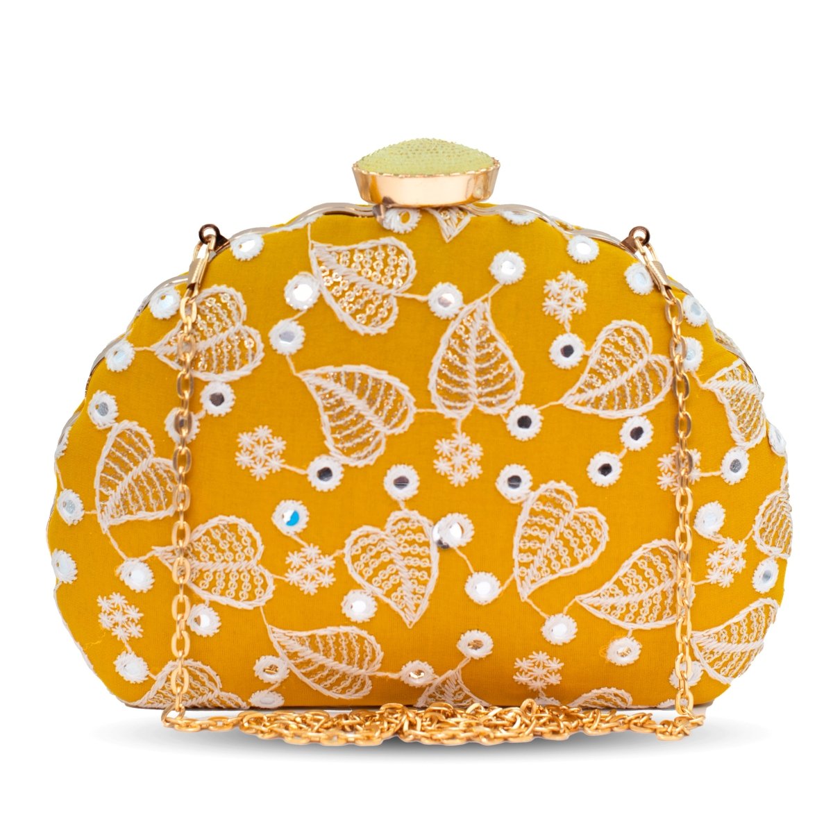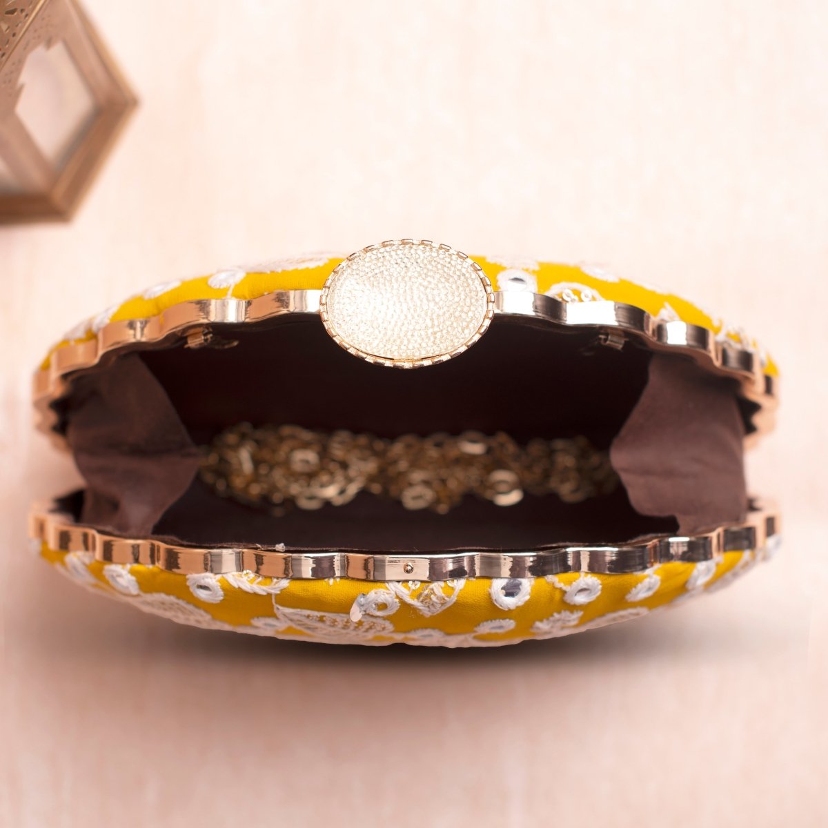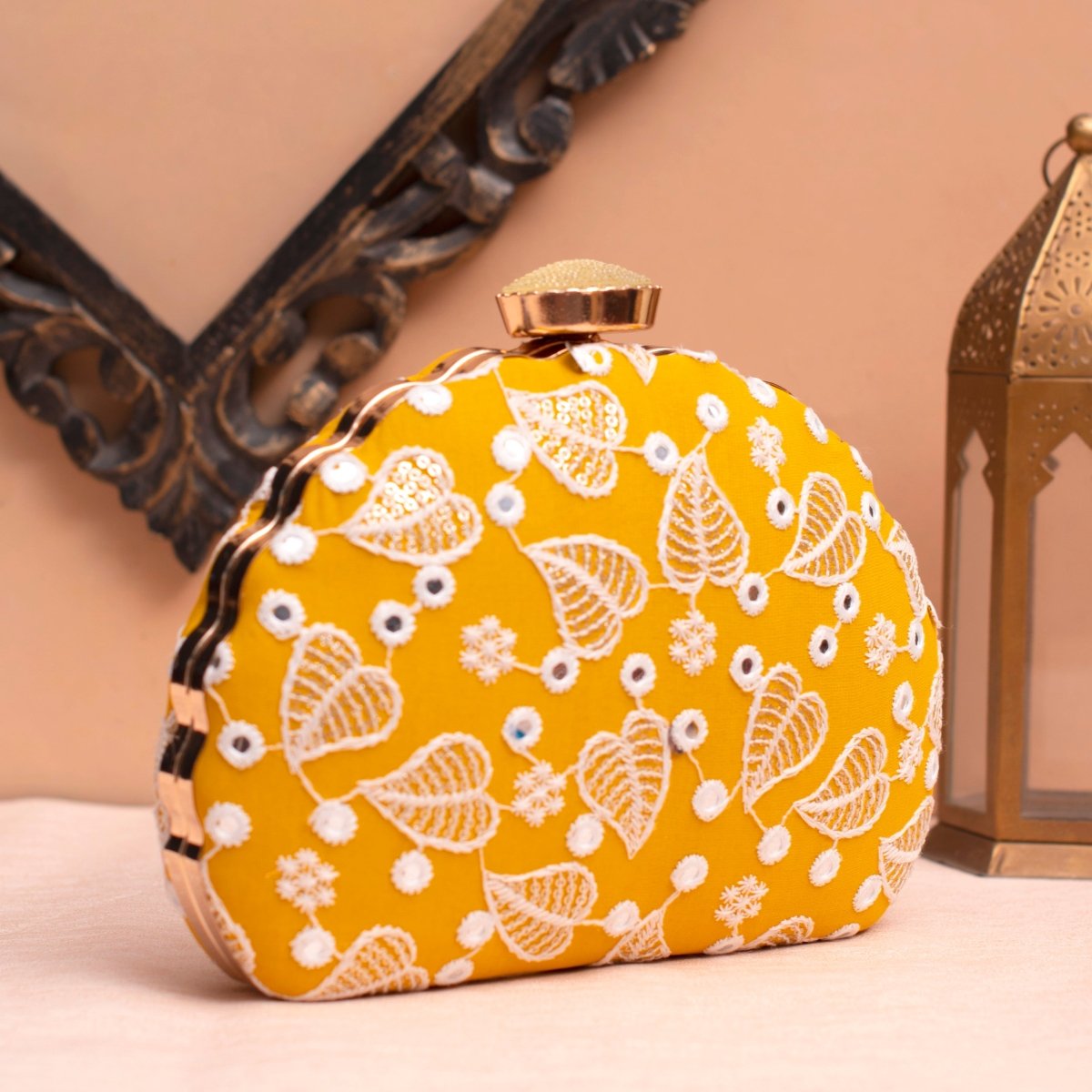 Artklim Yellow Base White Thread Embrodiery Clutch