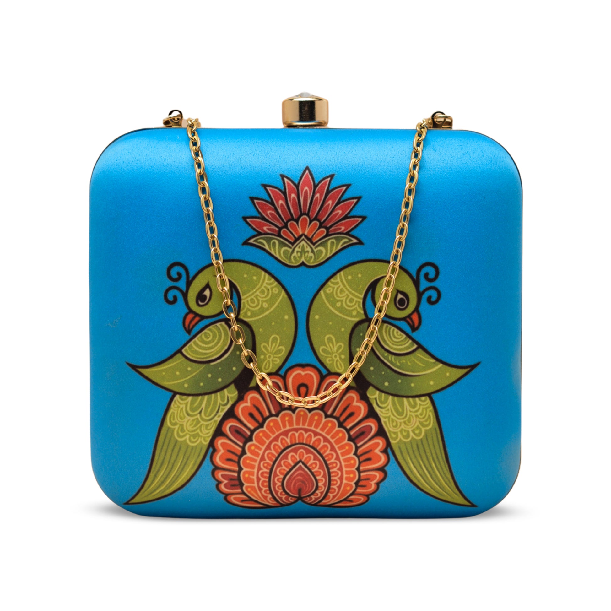 Add a burst of personality to every outing with these handcrafted clutches. Designed to blend fashion and art, each piece is a mini canvas—printed with vibrant illustrations, finished with a luxe hard-case body, and accented with a gleaming gold clasp and chain