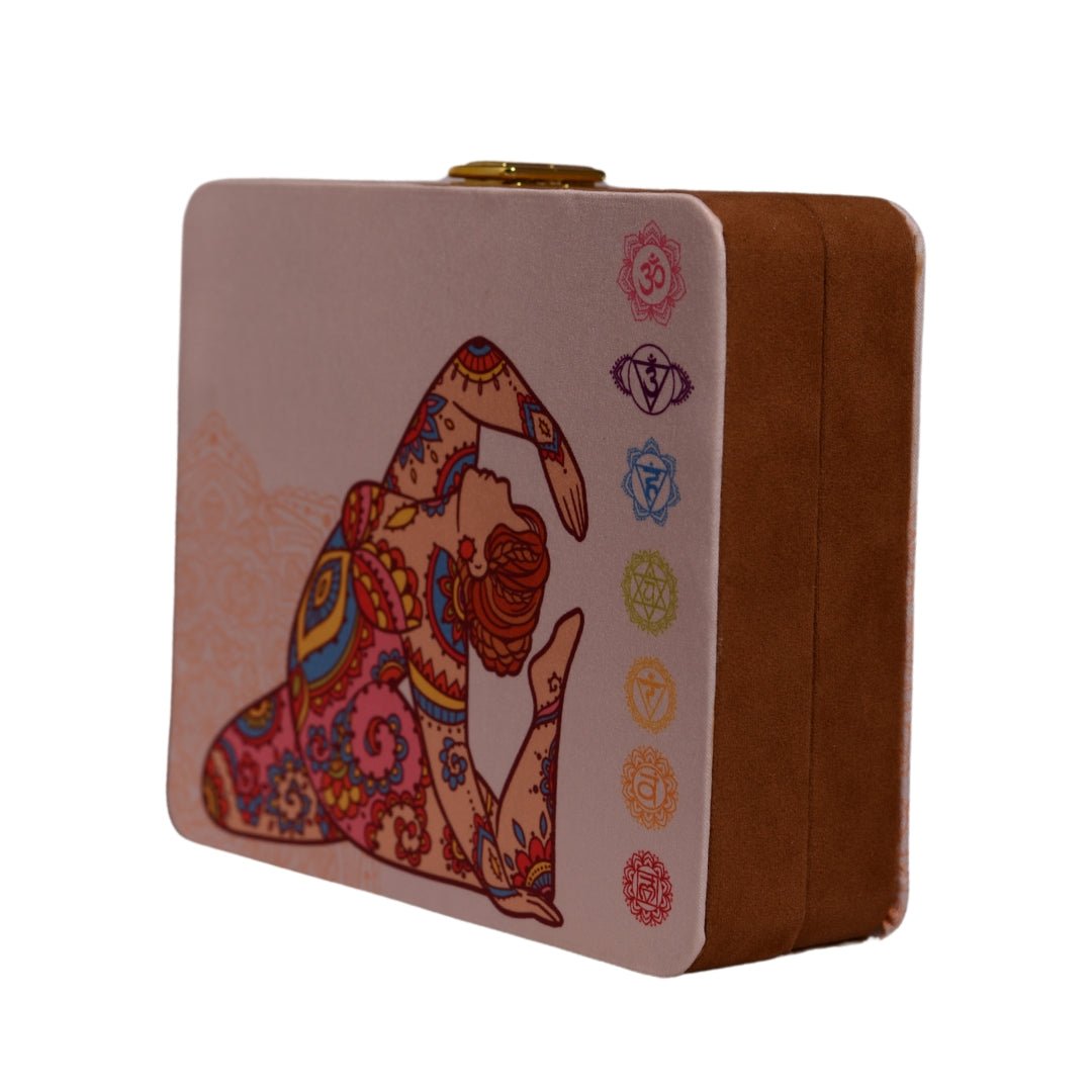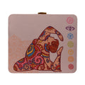 Beige Based Yoga Girl With Seven Chakras Printed Clutch