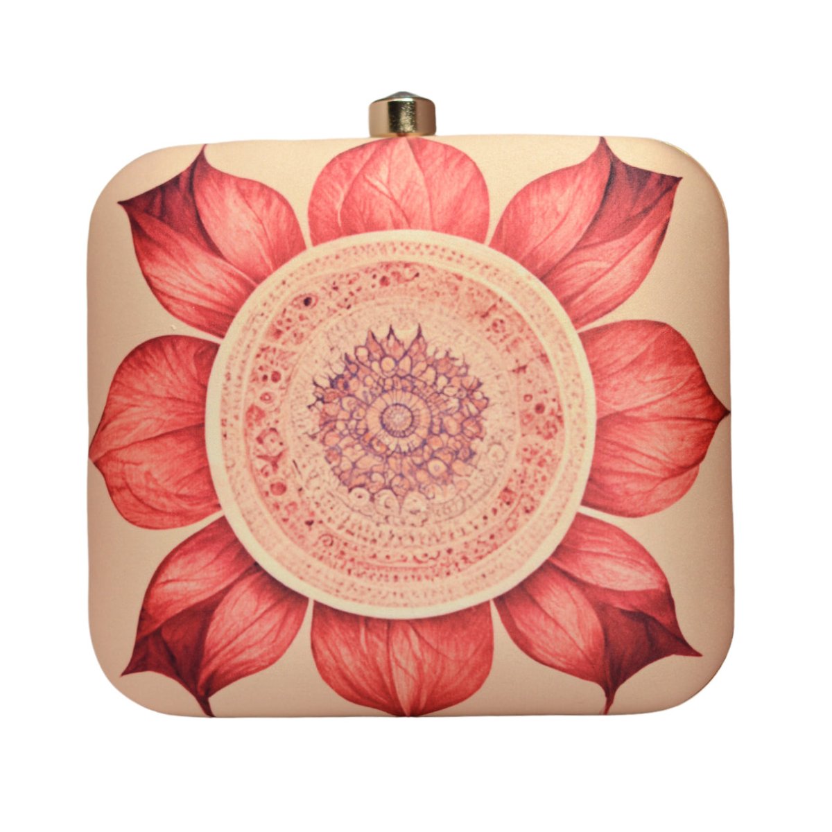 Biege And Red Flower Printed Clutch
