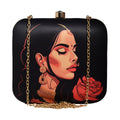 Black Lady With Rose Printed Clutch