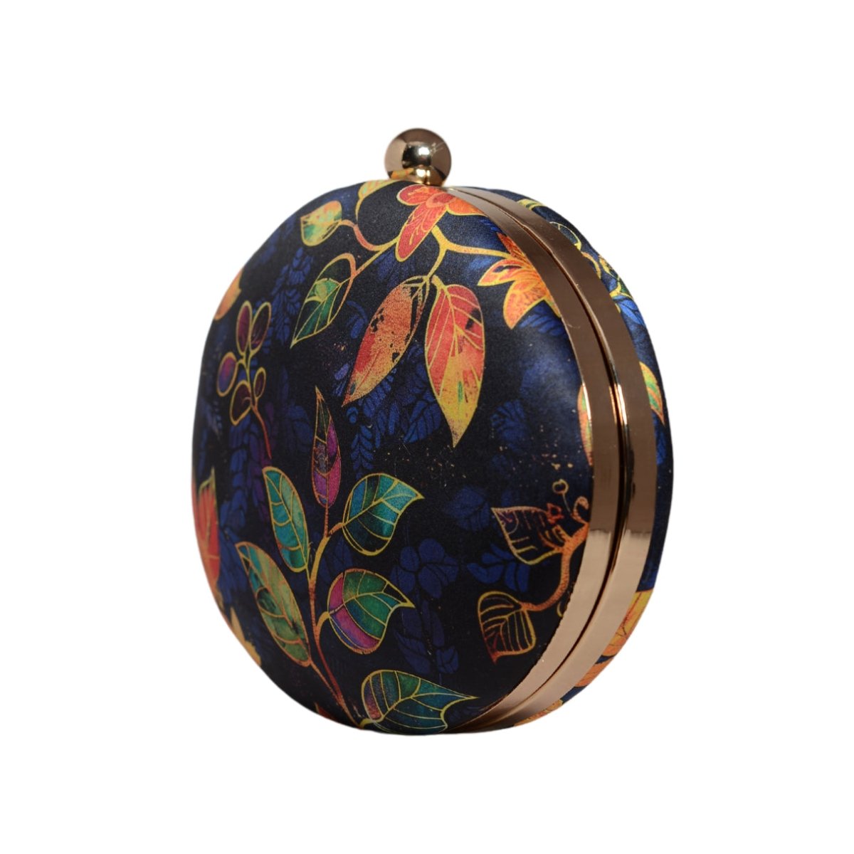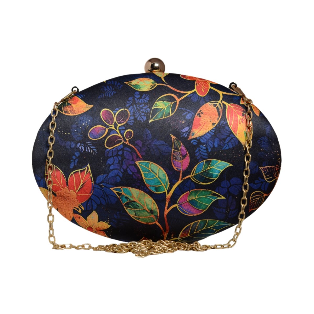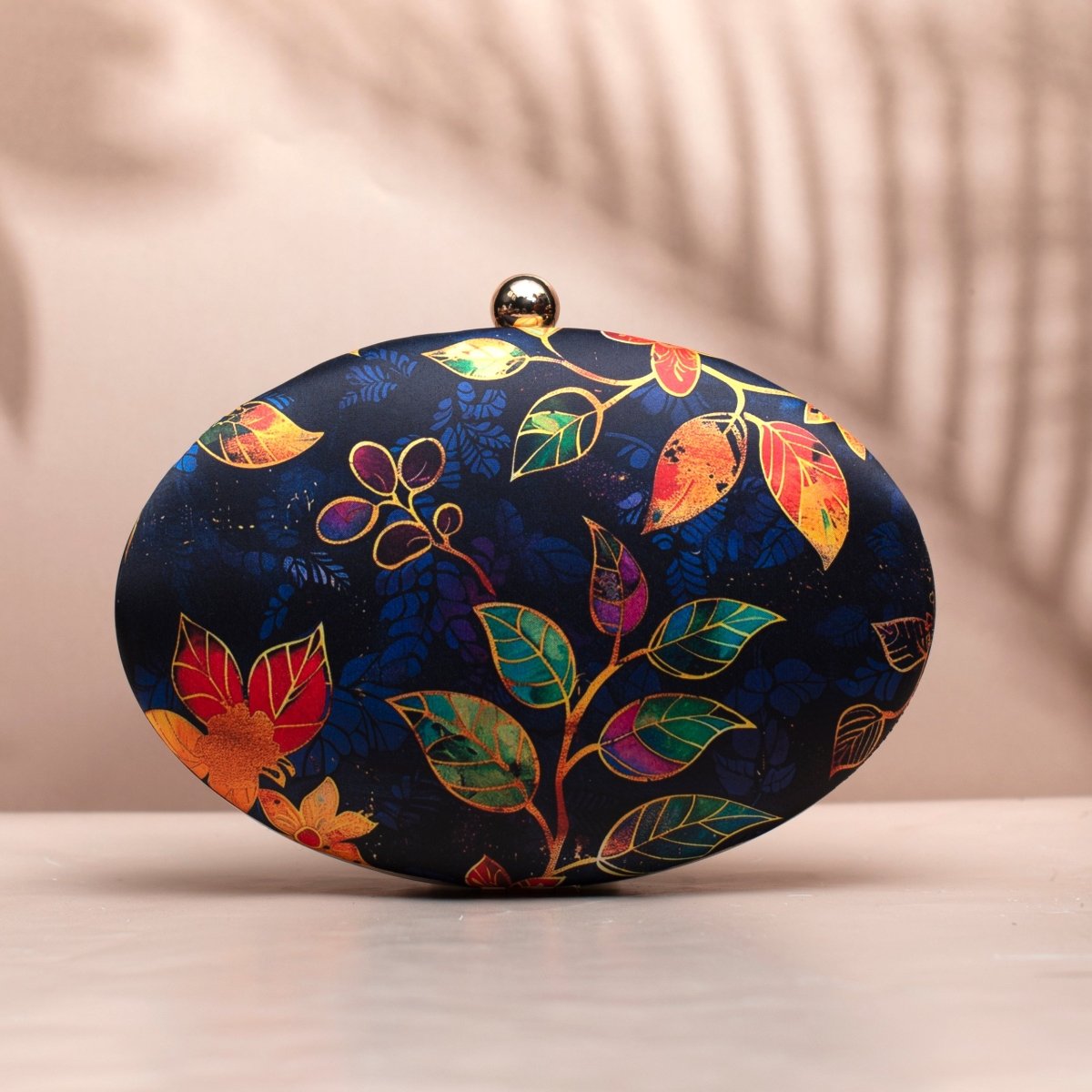 Blue Batik Leaves Print Oval Clutch