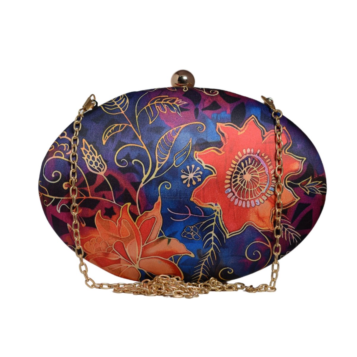 Blue Batik Print Oval Clutch