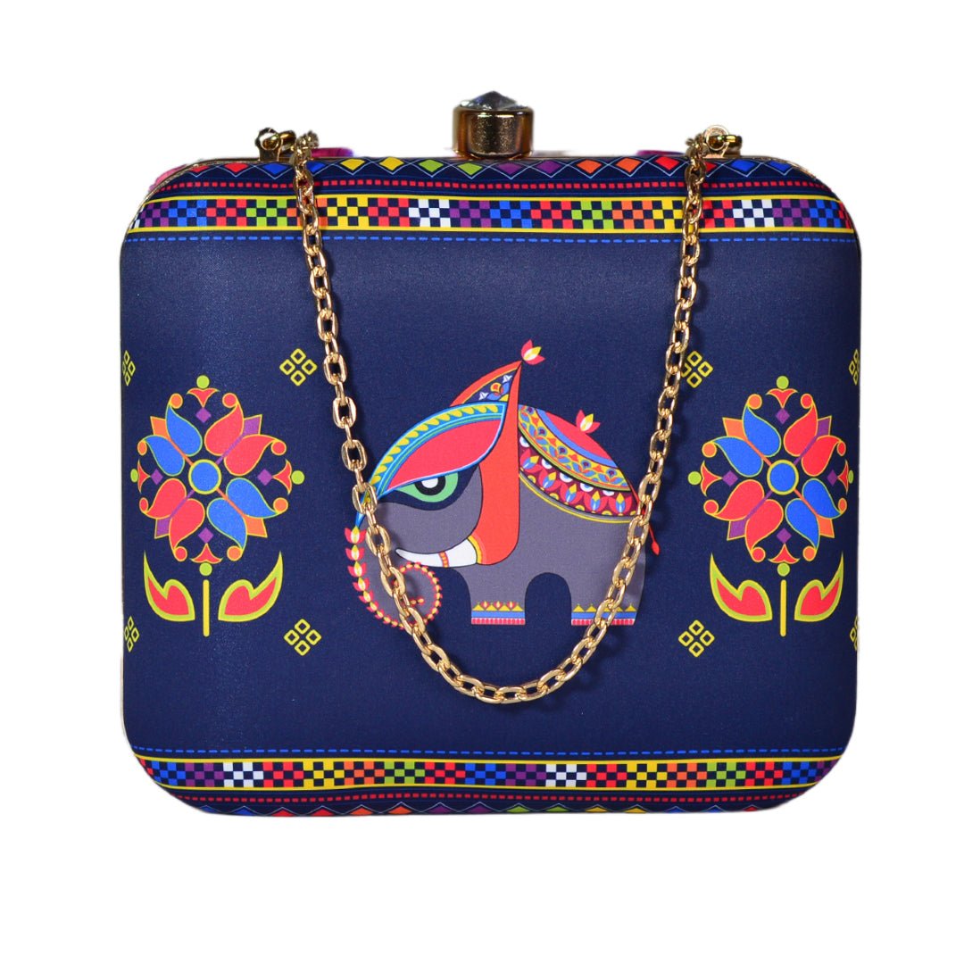 Blue Elephant Printed Clutch
