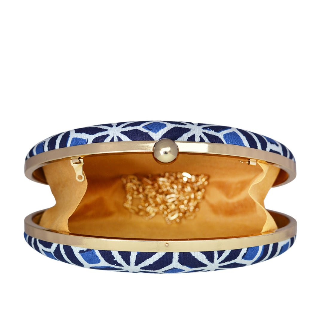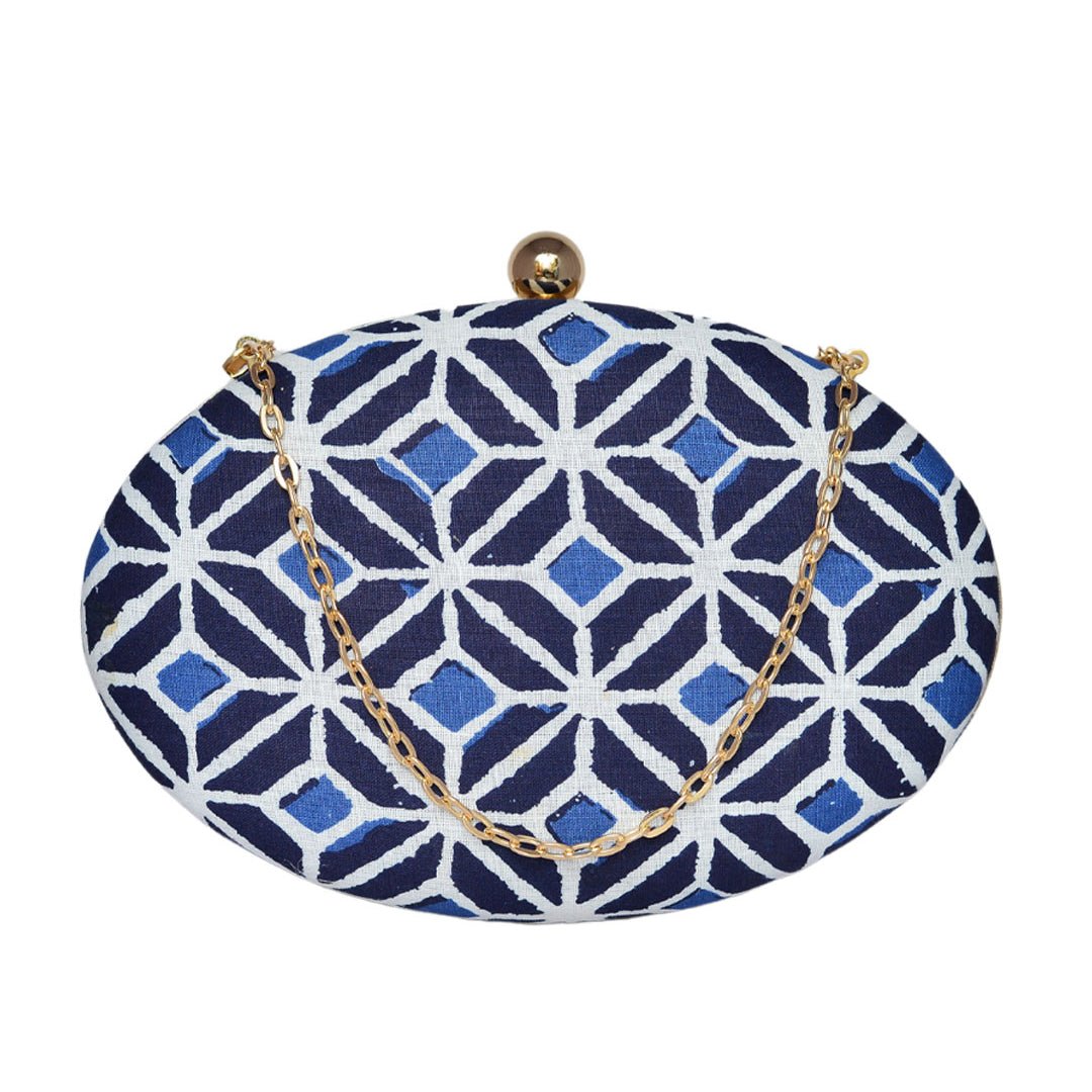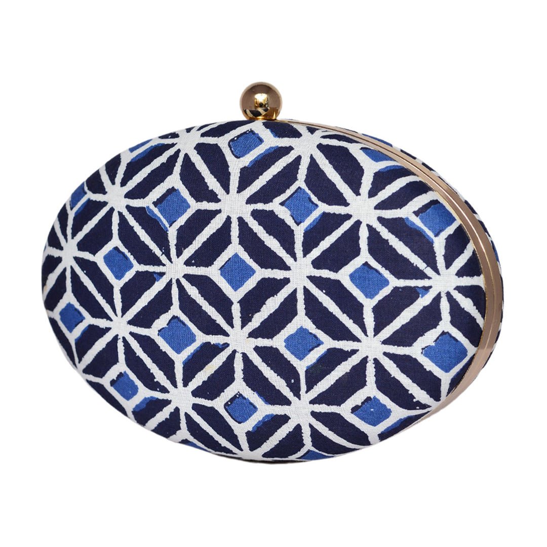 Blue Printed Oval Clutch
