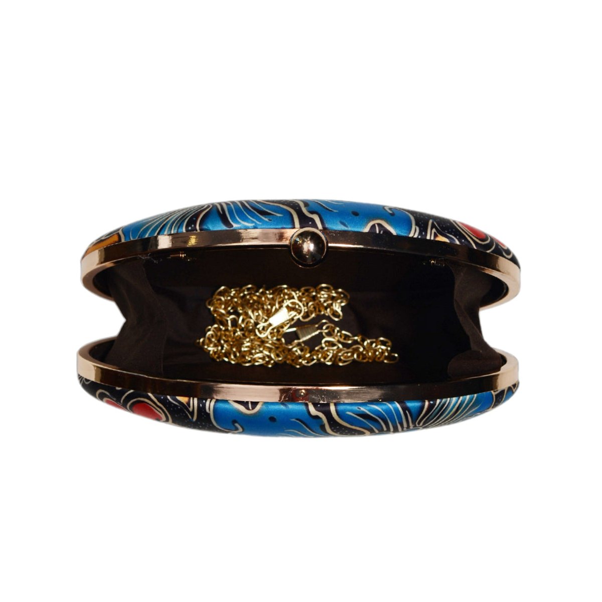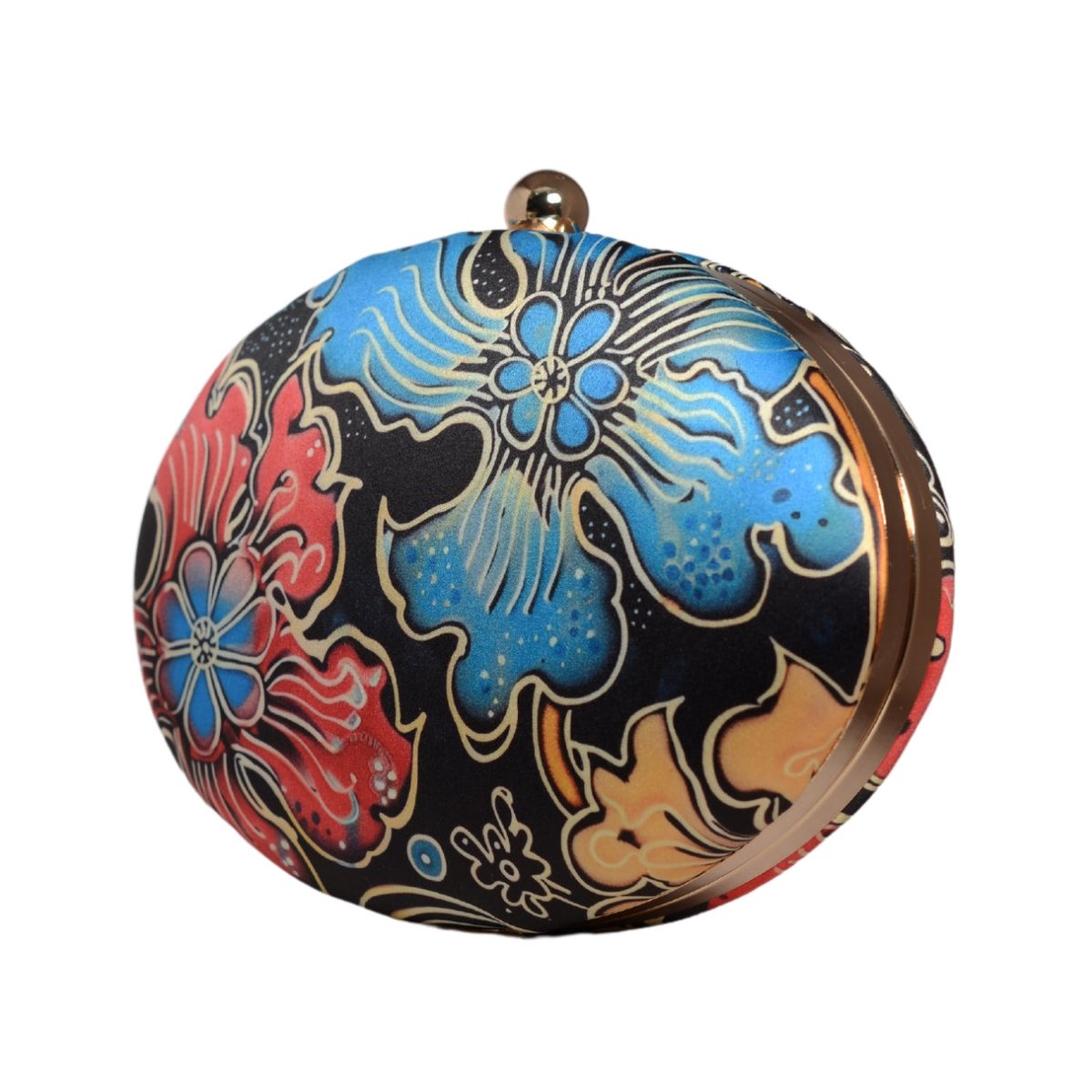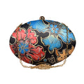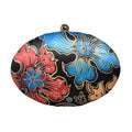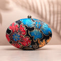 Blue And Red Floral Printed Oval Clutch