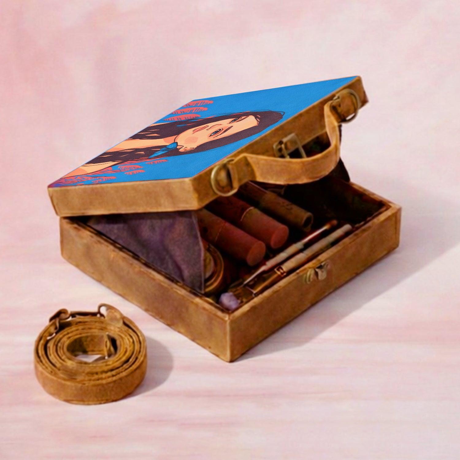 Brown Hair Lady Printed Suitcase Style