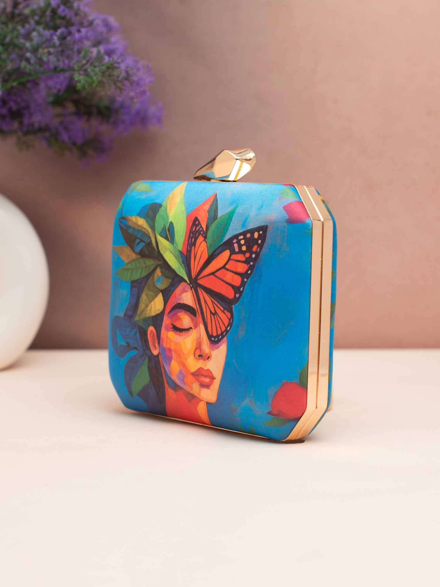 Add a burst of personality to every outing with these handcrafted clutches. Designed to blend fashion and art, each piece is a mini canvas—printed with vibrant illustrations, finished with a luxe hard-case body, and accented with a gleaming gold clasp and chain.