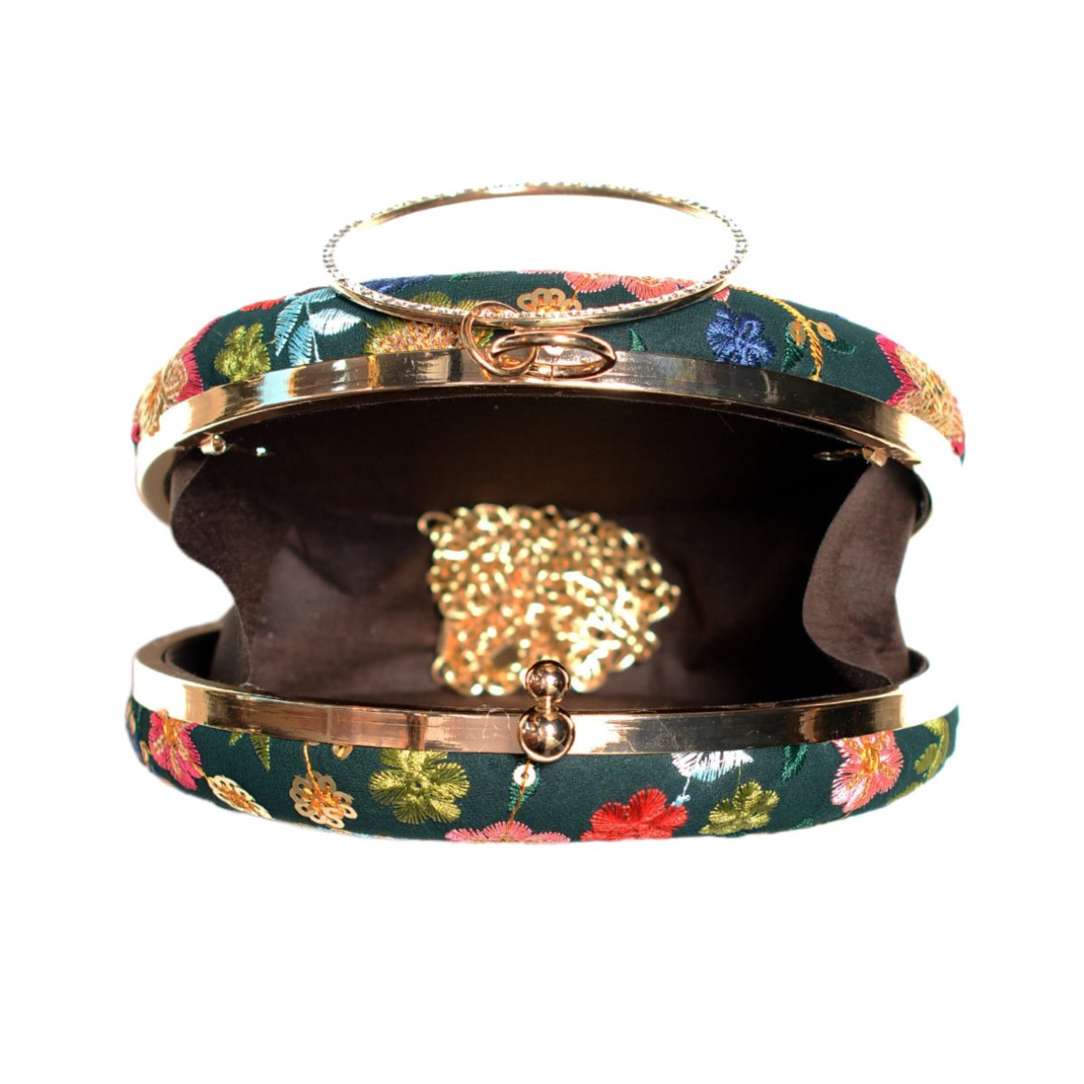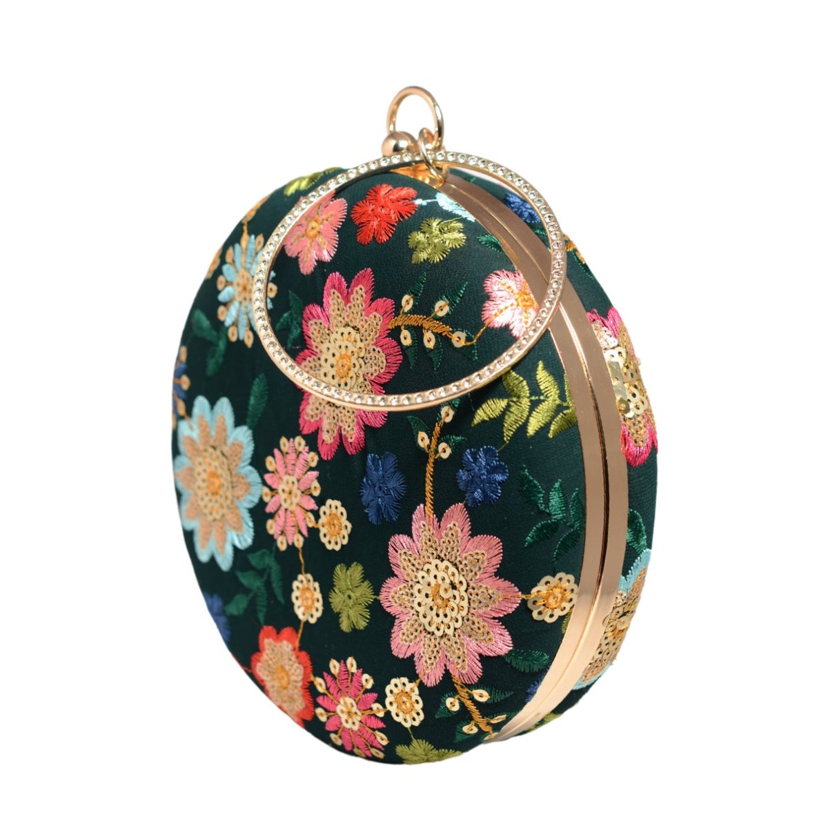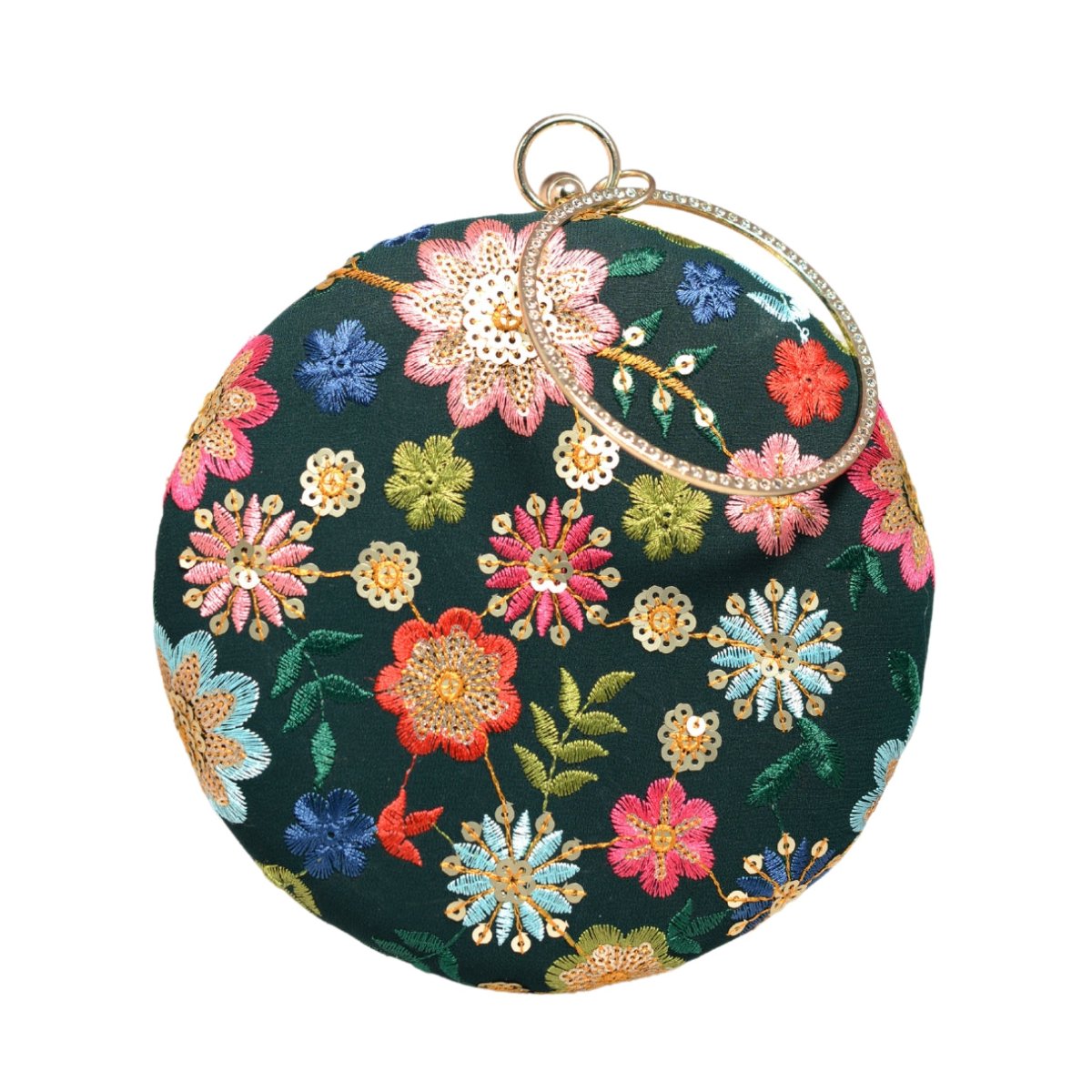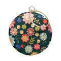 Green Floral Embroidery Round Clutch