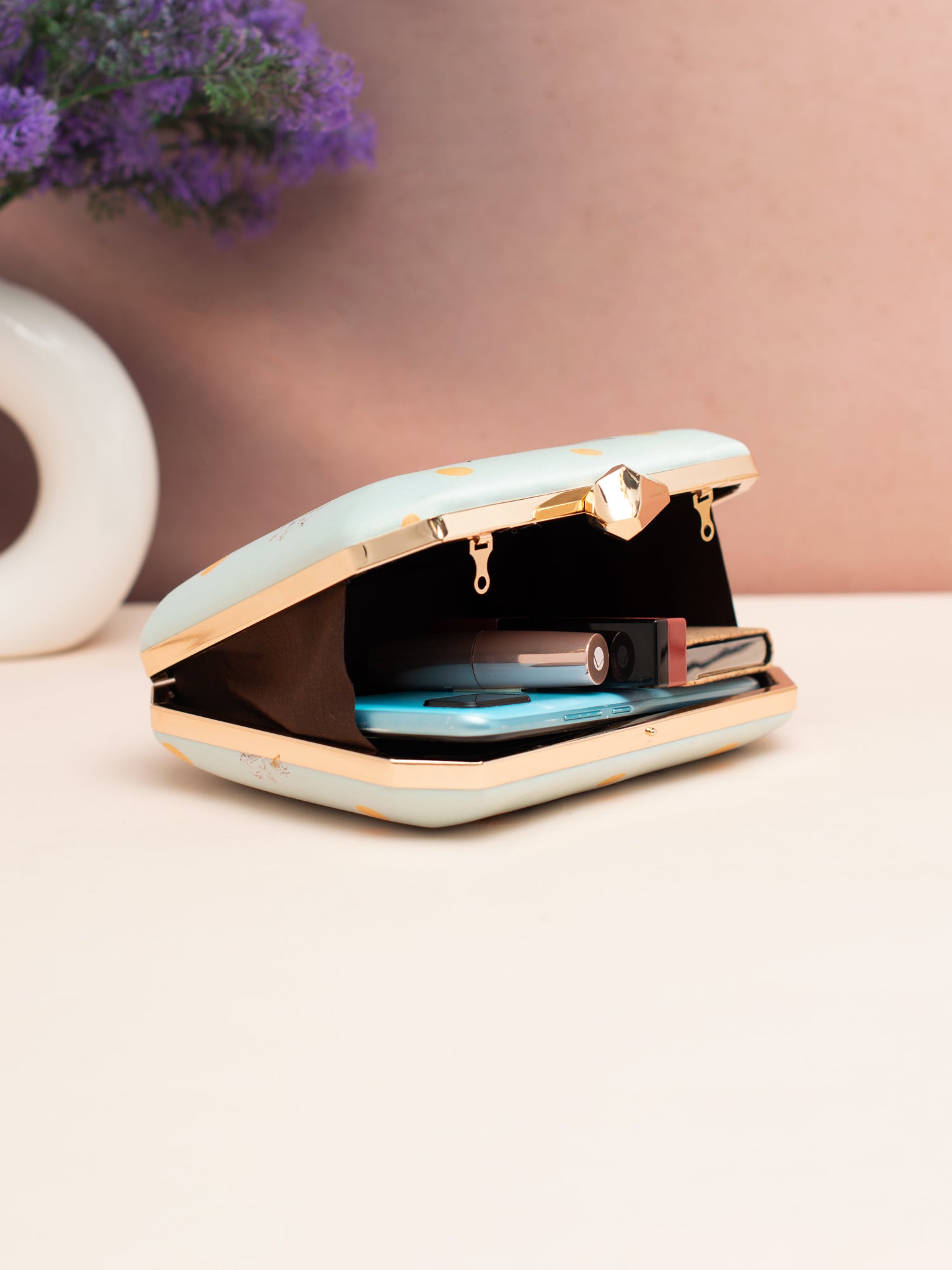 Add a burst of personality to every outing with these handcrafted clutches. Designed to blend fashion and art, each piece is a mini canvas—printed with vibrant illustrations, finished with a luxe hard-case body, and accented with a gleaming gold clasp and chain.