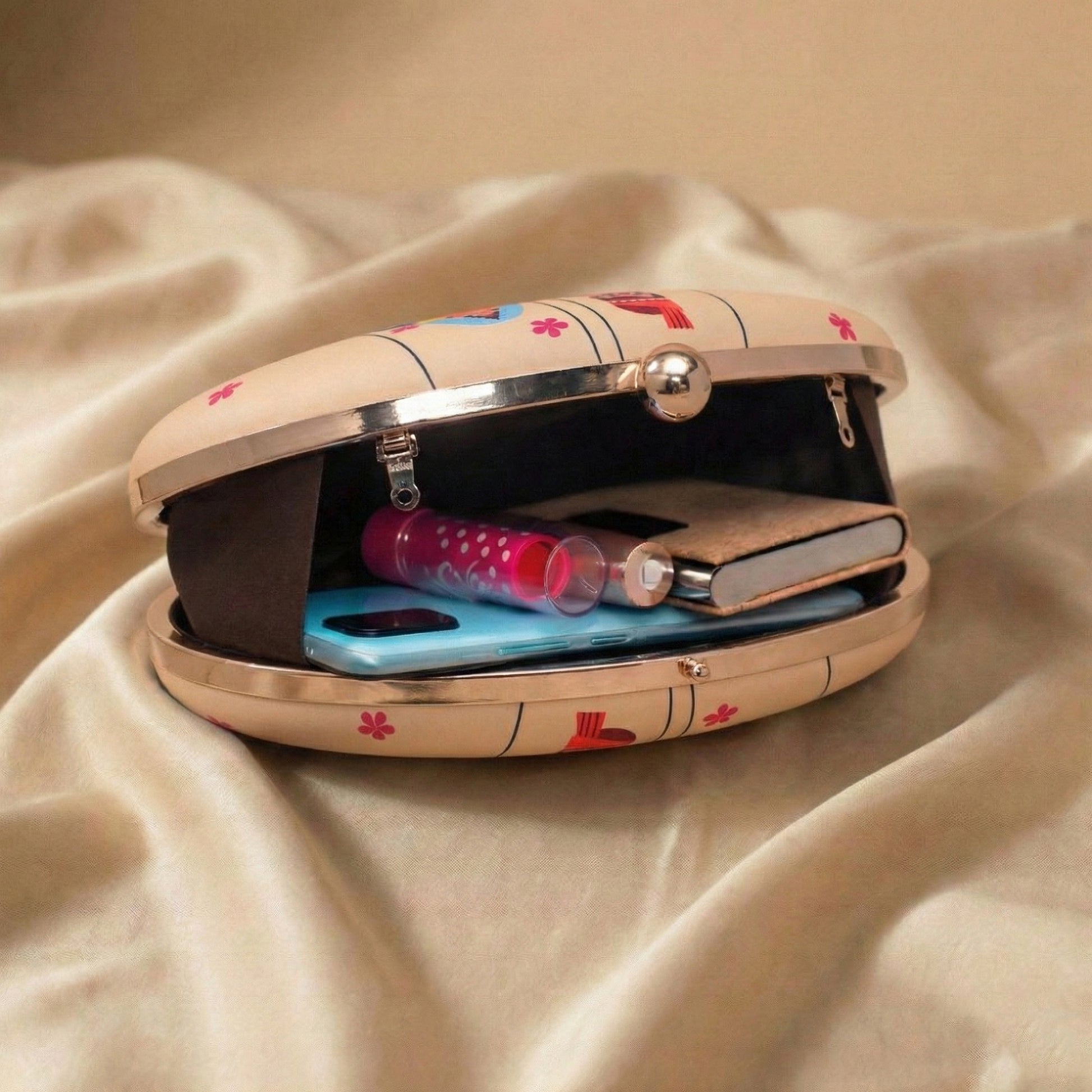 Indian Puppet Printed Oval Clutch