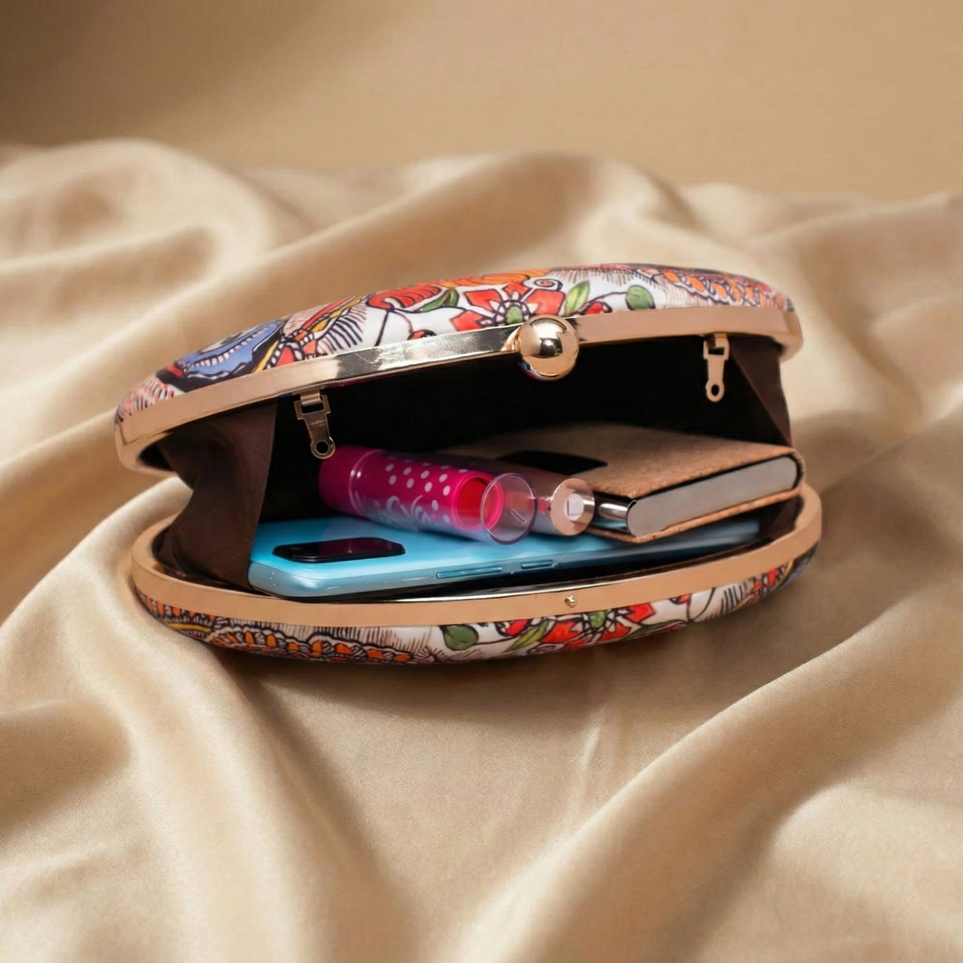 Artklim Madhubani Print Oval clutch