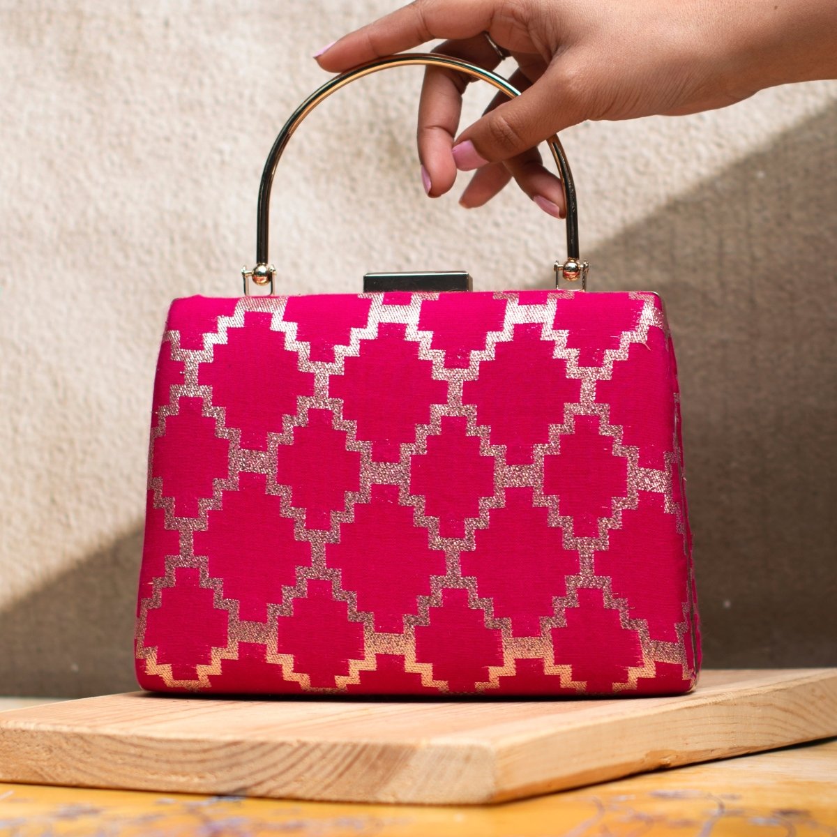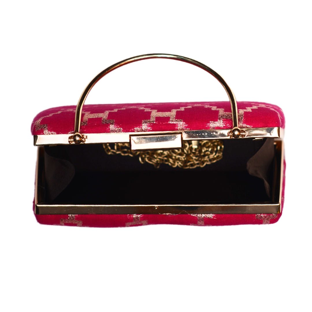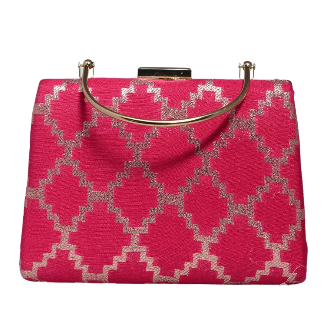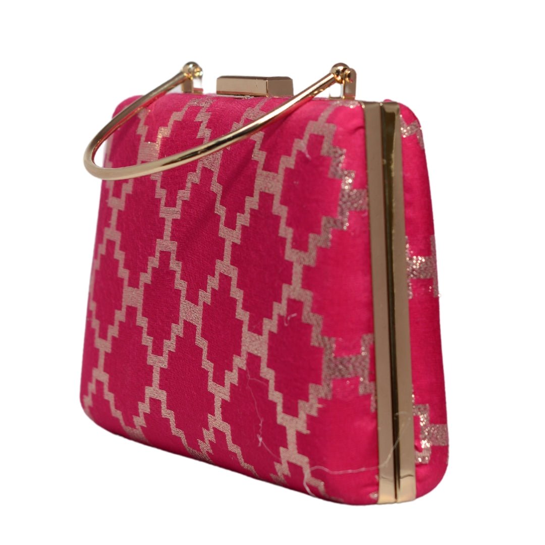 Magenta Pink Brocade Fabric Clutch